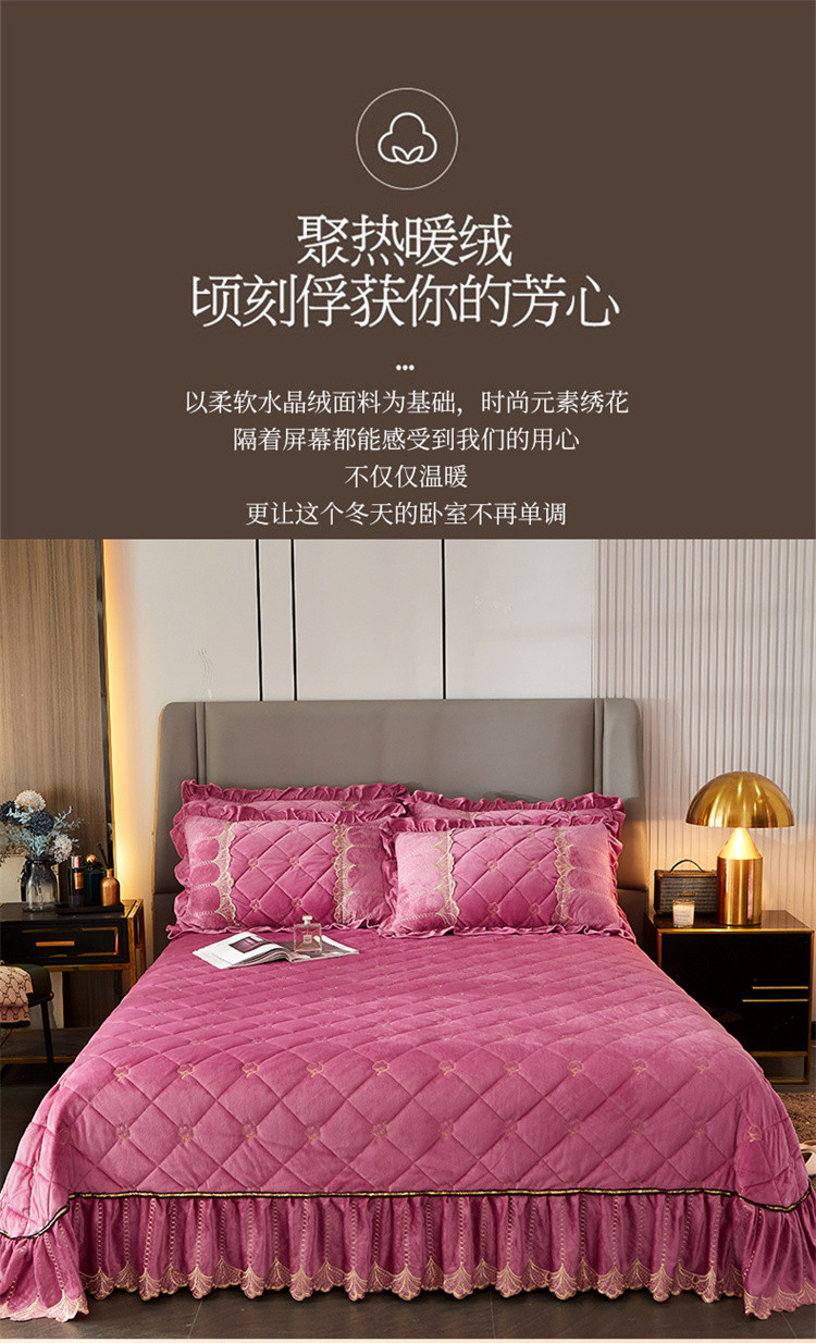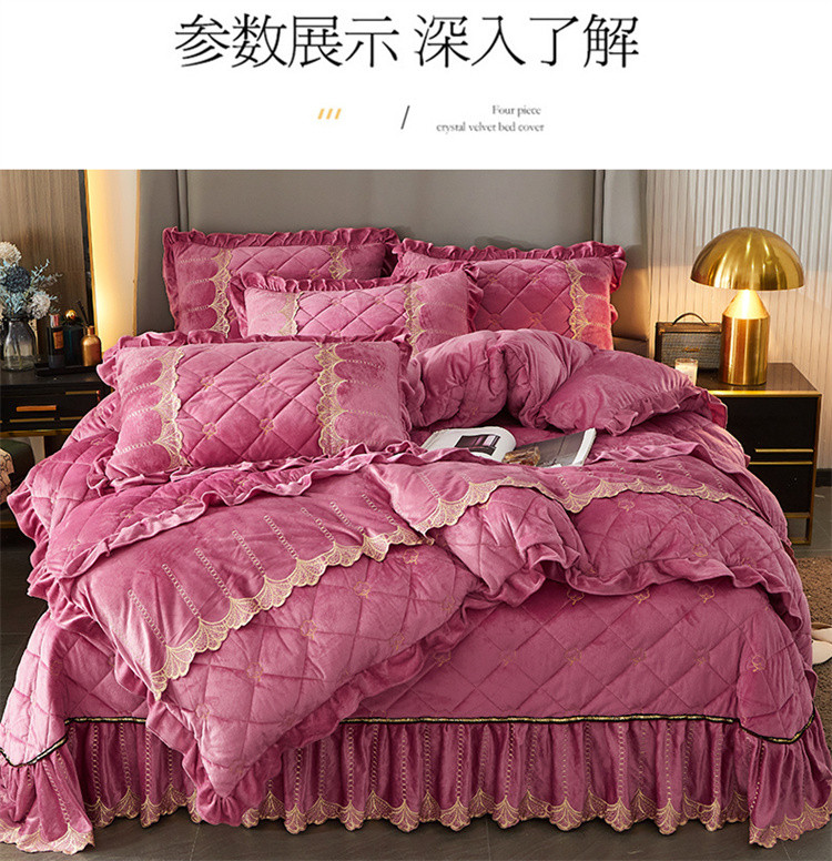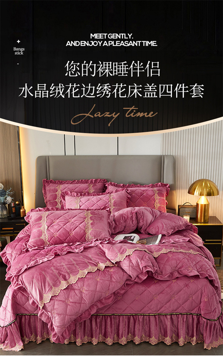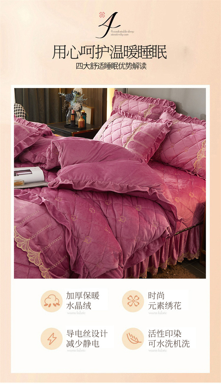商品名称:十个点家纺 2024新款刺绣水晶绒床盖四件套 豆沙