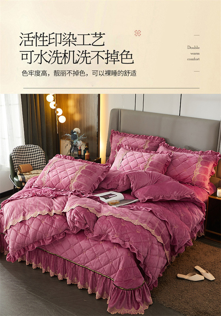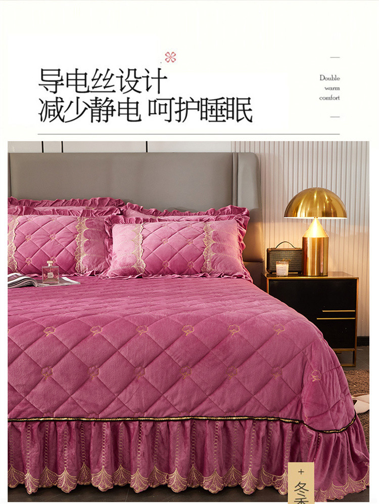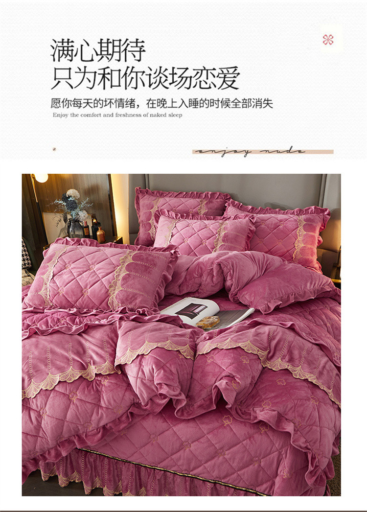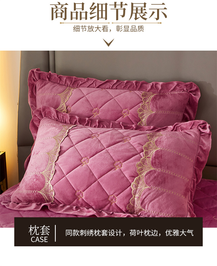 商品名称:十个点家纺 2024新款刺绣水晶绒床盖四件套 豆沙