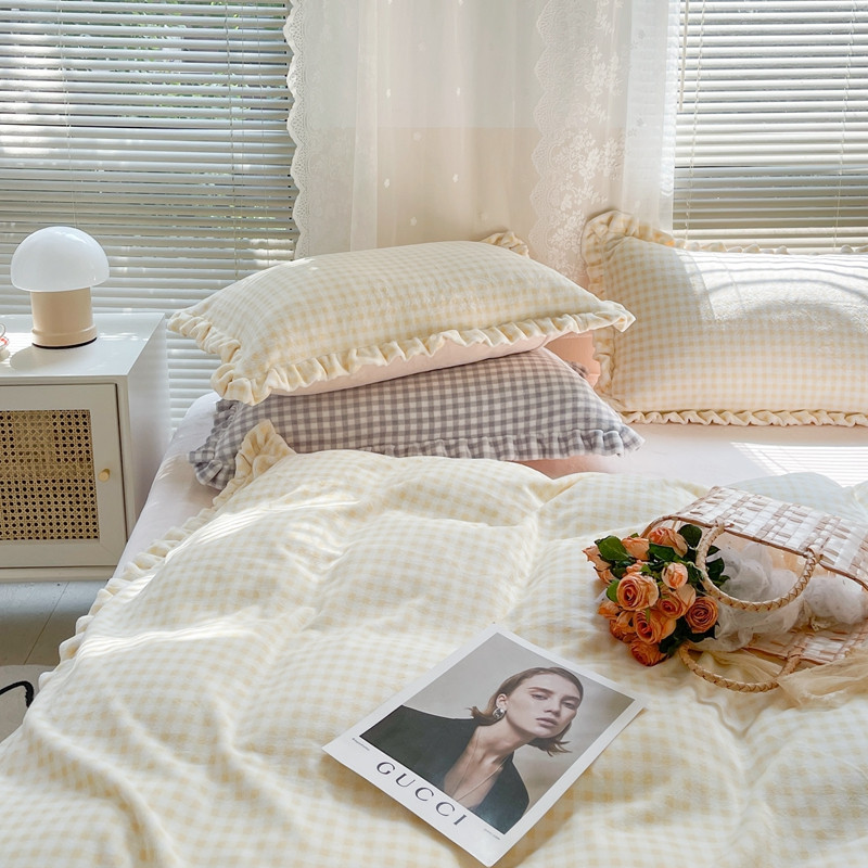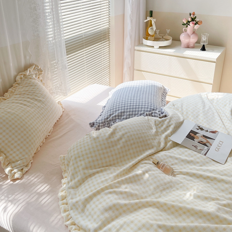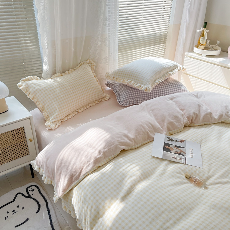 时年家纺 2022新款240g亲肤牛奶绒小美好花边款四件套 小美好-芝士黄
