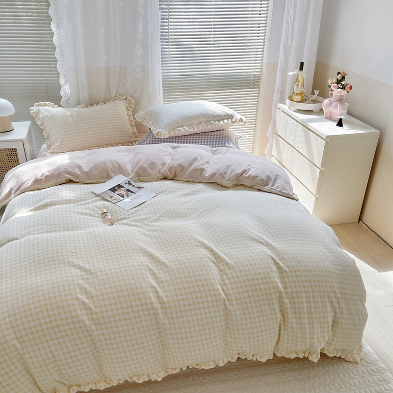 (总)时年 2021新款婴肤绒纯色花边款四件套,奶油泡芙,丝绒蓝灰,香草抹茶,杨枝甘露,芝芝莓莓