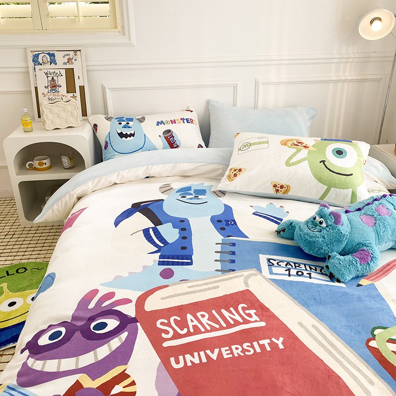 圆岛家纺 2022新款迪士尼大版牛奶绒宝宝绒四件套 怪兽大学