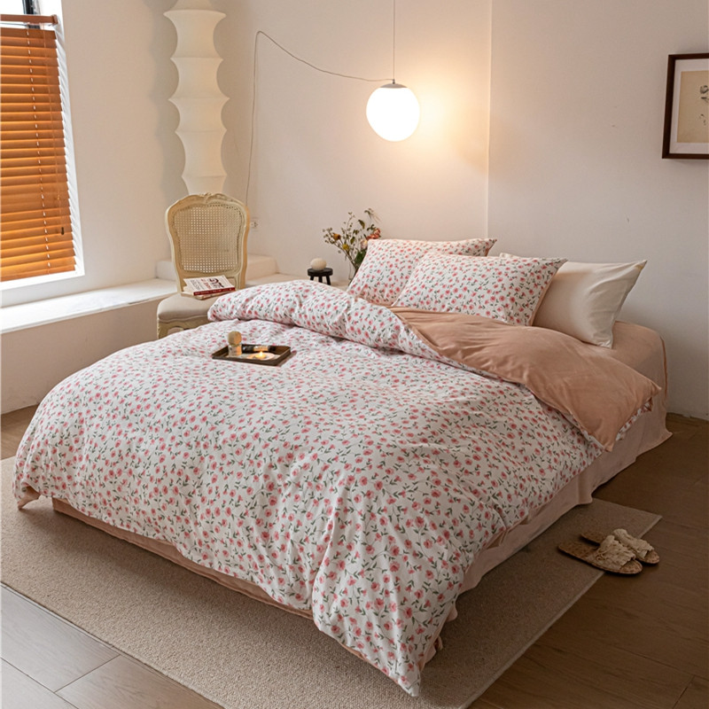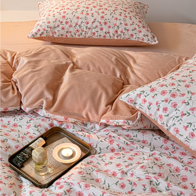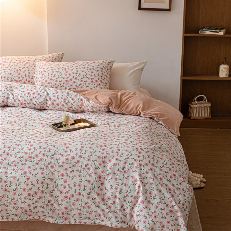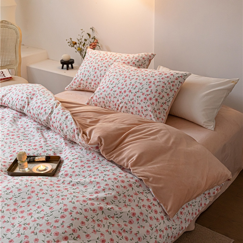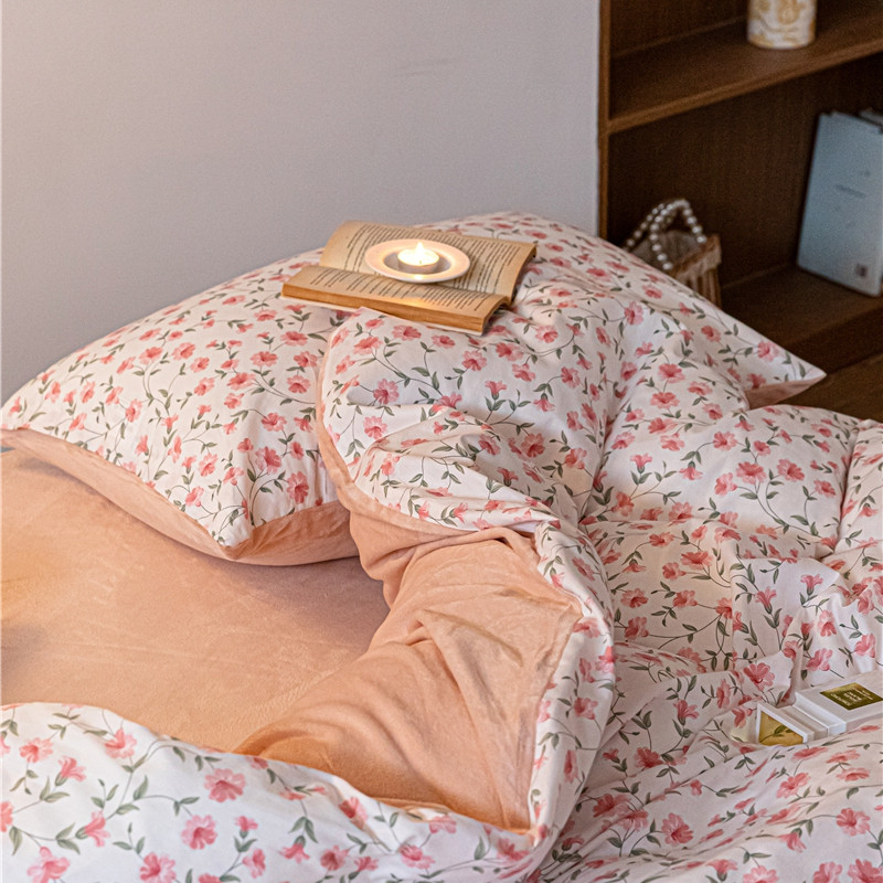 商品名称:棉眠 2022新款AB版棉加绒四件套 樱花雨棉加绒