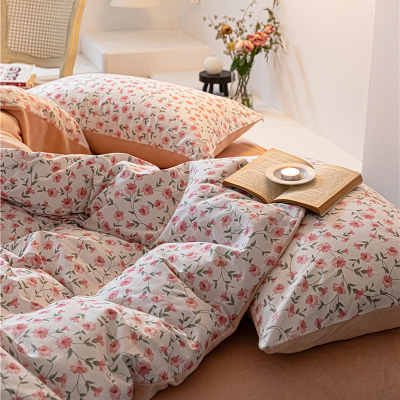 棉眠 2022新款AB版棉加绒四件套 樱花雨棉加绒
