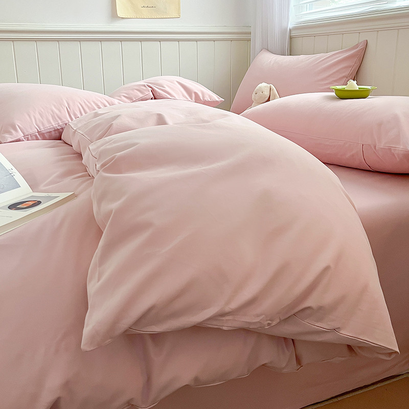 (总)蓝邻家纺 2025新款A类全棉纯棉水洗棉纯色贴标系列四件套-风格二,粉末蓝,高级灰,公主粉,贵族白,焦糖色,柠檬黄,牛仔兰,千黛紫,时尚绿,丝绒绿,小雏菊,星辰灰,优雅紫