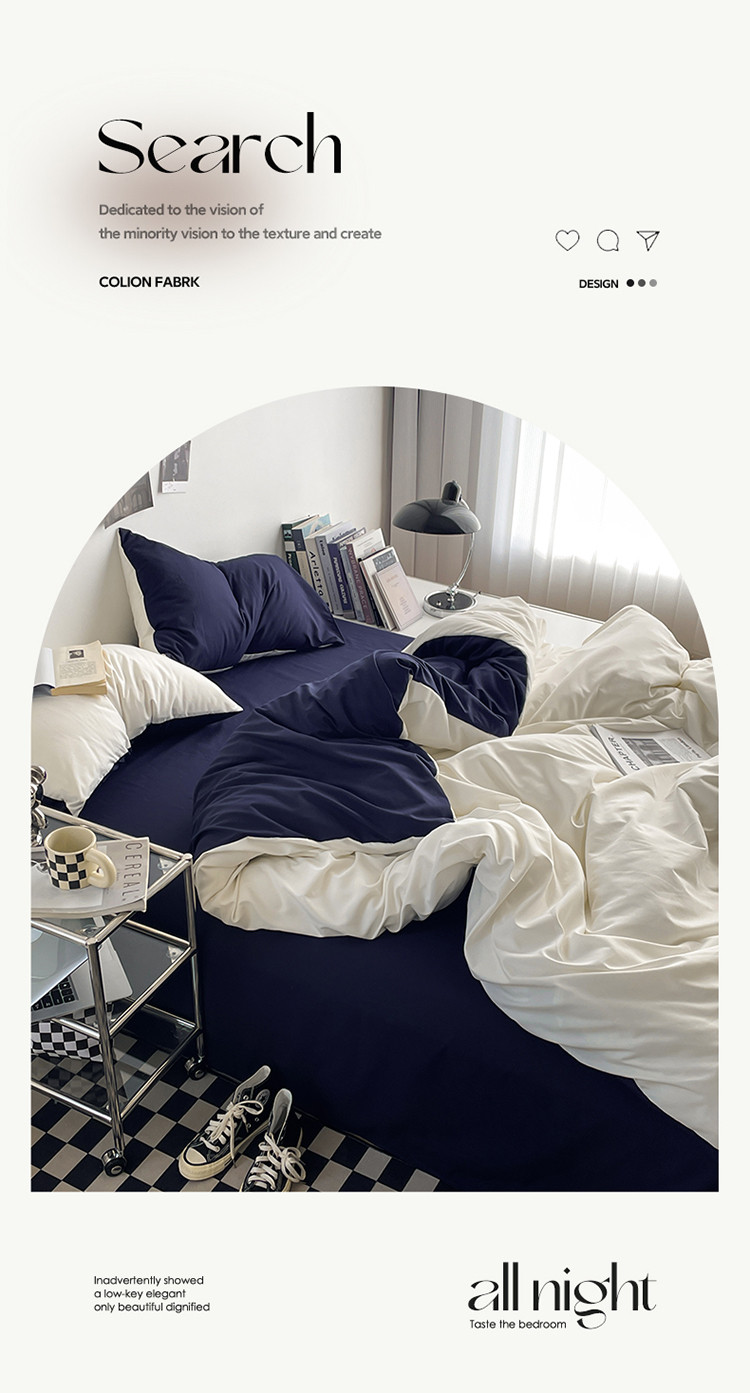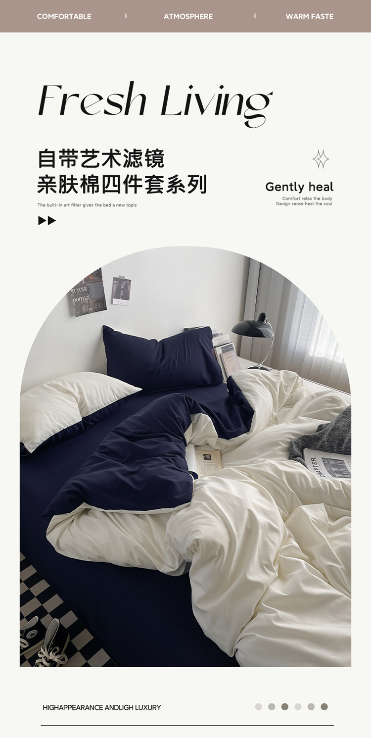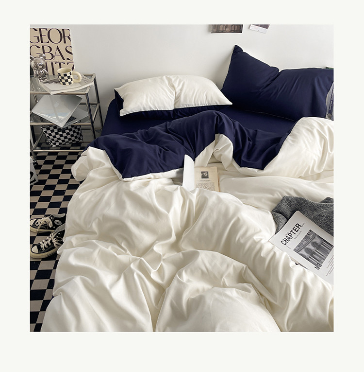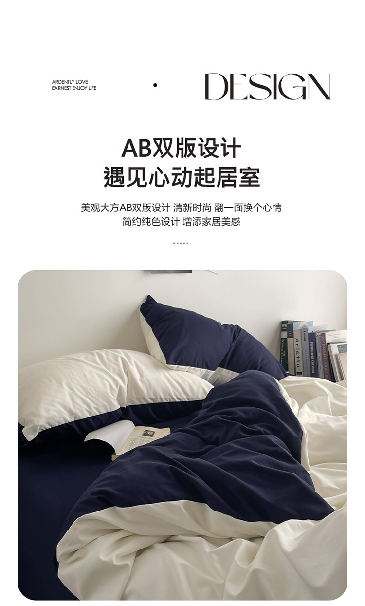 当前位置: 91家纺网 > 商品网购 > 床品套件 > 四件套 > 全棉普通四件套 > 贝拉梦 2023亲肤棉北欧简约风纯色双拼105g四件套白蓝灰