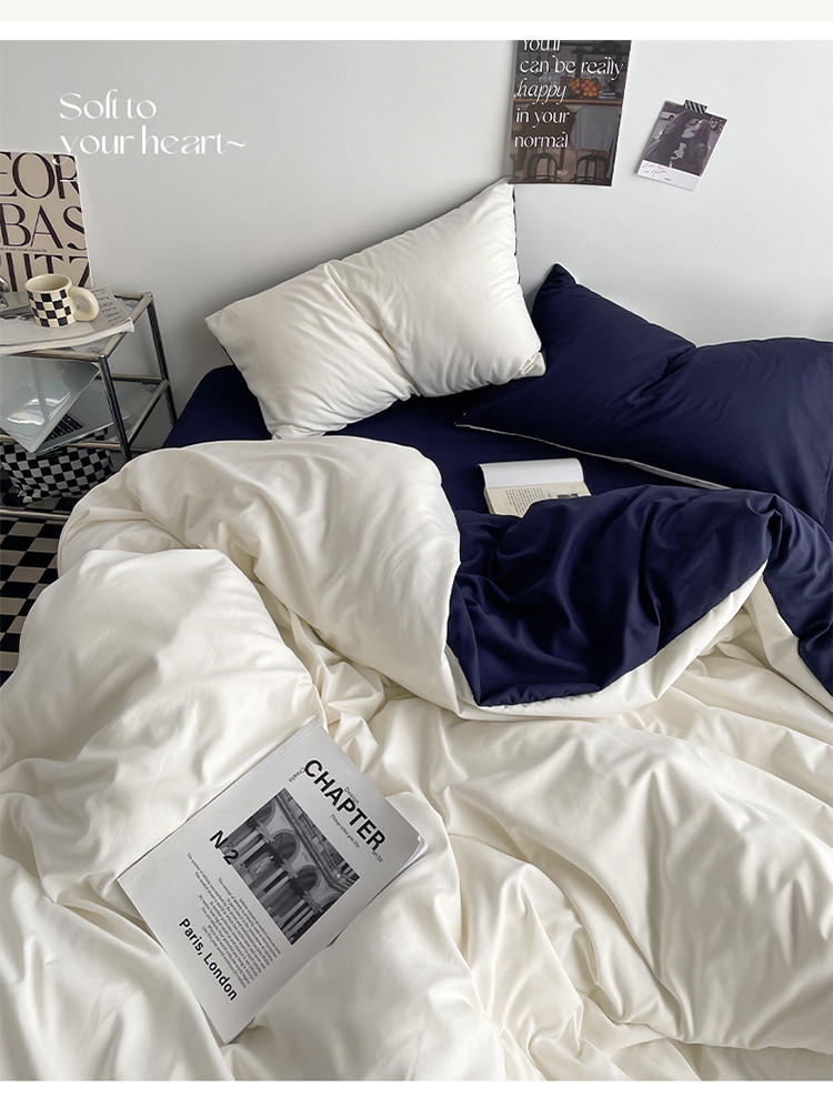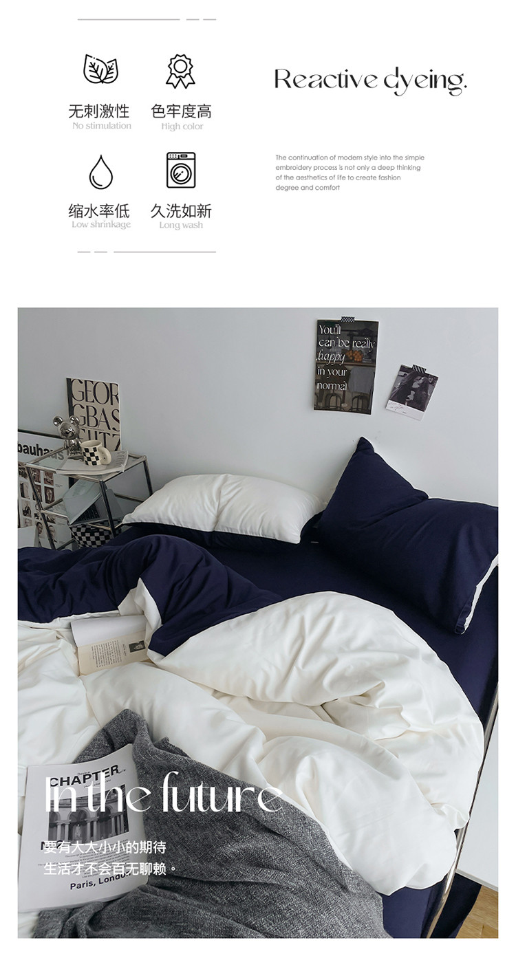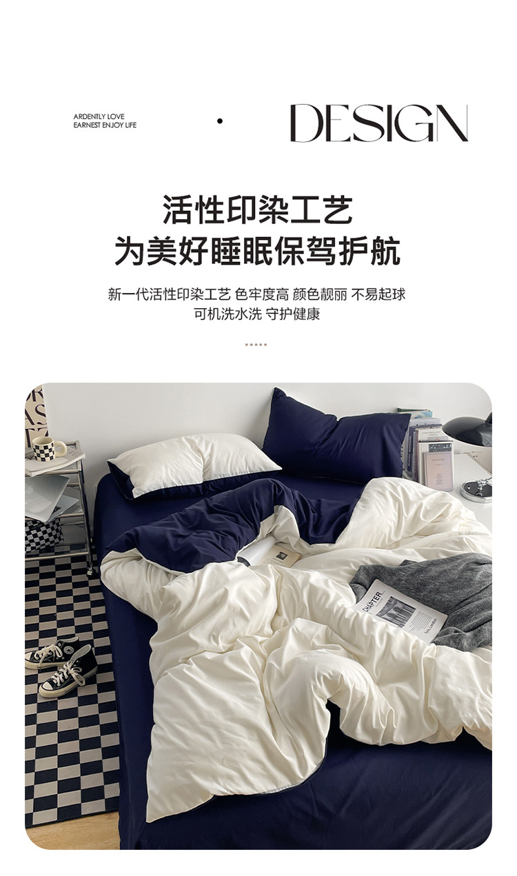 当前位置: 91家纺网 > 商品网购 > 床品套件 > 四件套 > 全棉普通四件套 > 贝拉梦 2023亲肤棉北欧简约风纯色双拼105g四件套白蓝灰