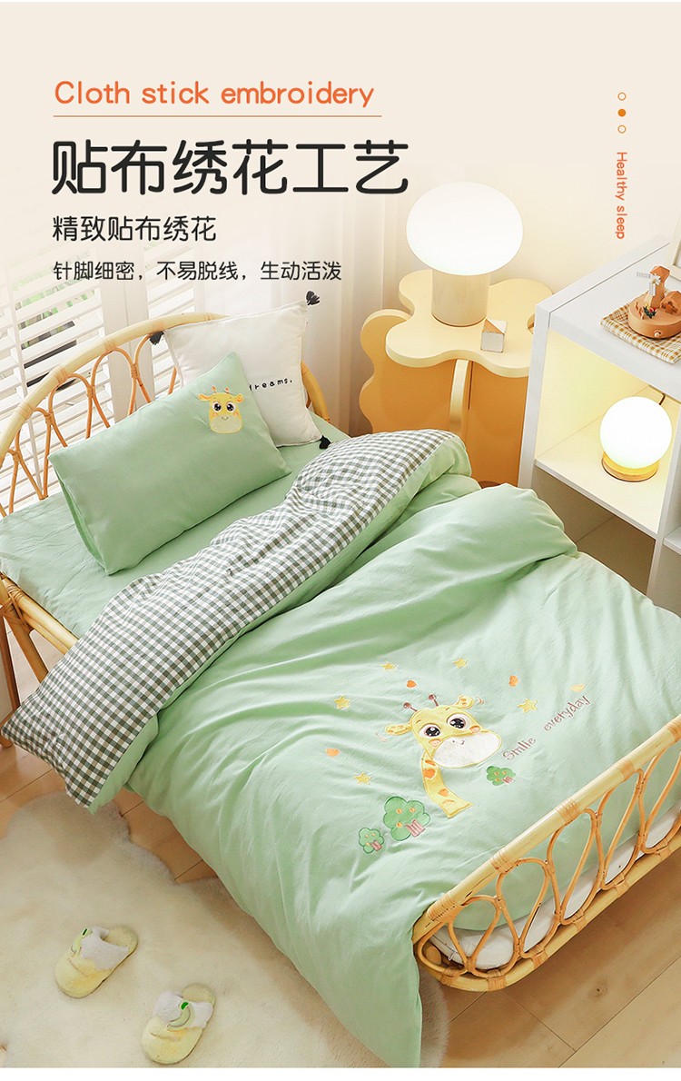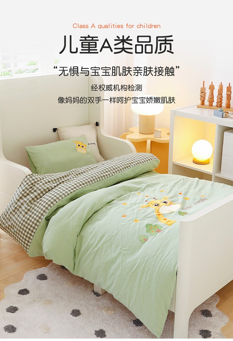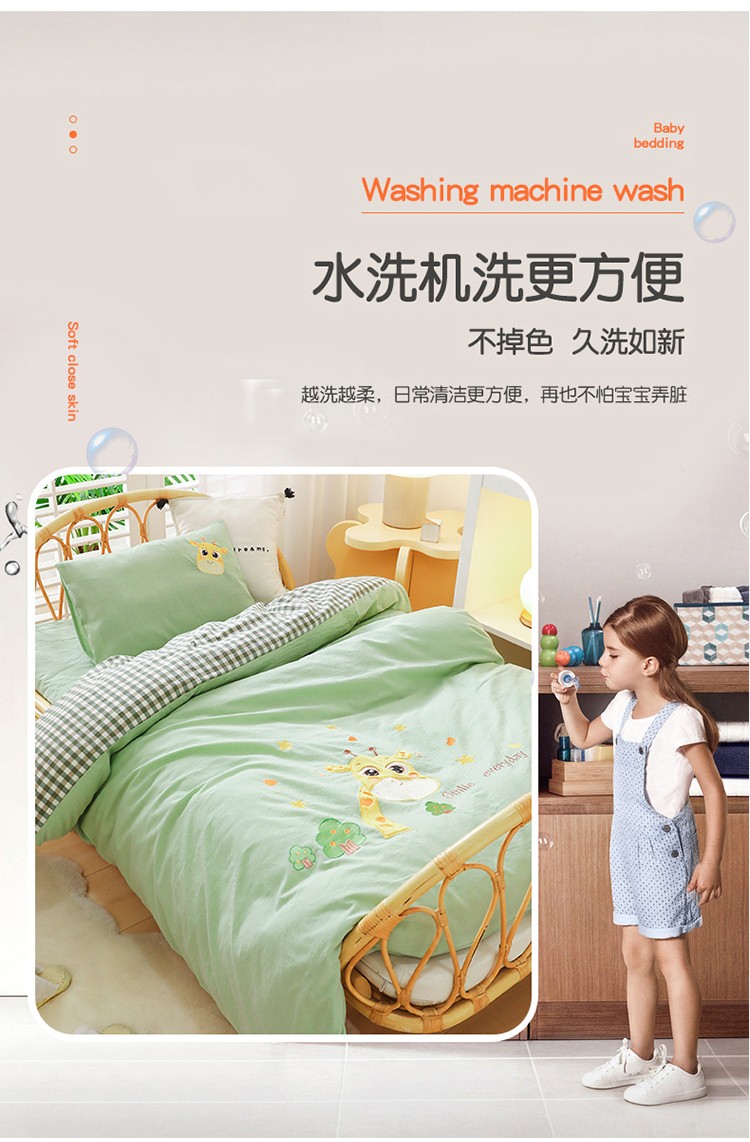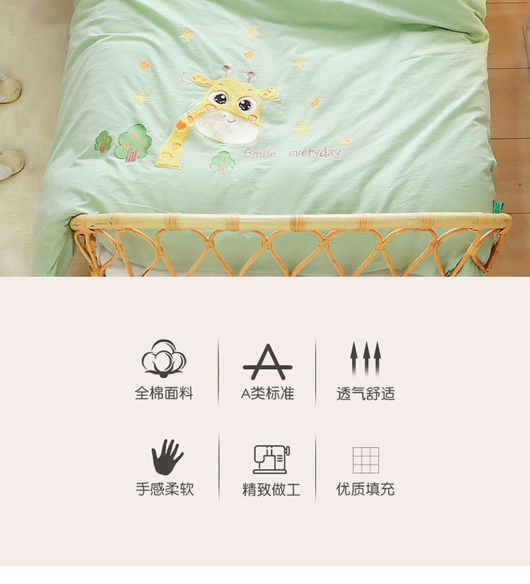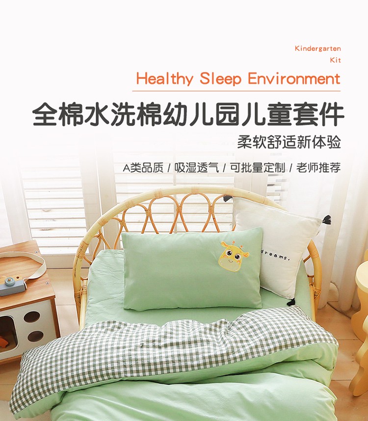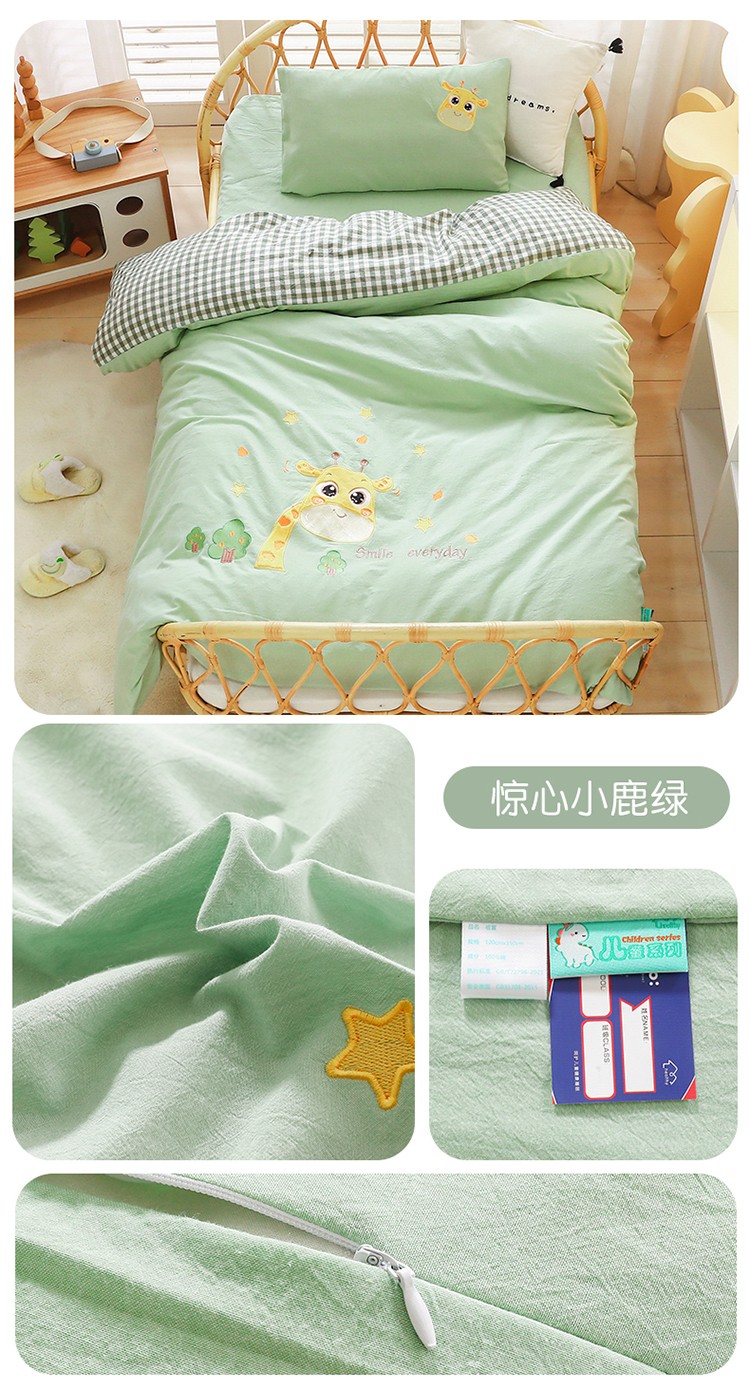 当前位置: 91家纺网 > 商品网购 > 婴童用品 > 婴童床品套件 > A类全棉水洗棉儿童套件幼儿园被子三件套宝宝午睡六件套 惊心小鹿绿