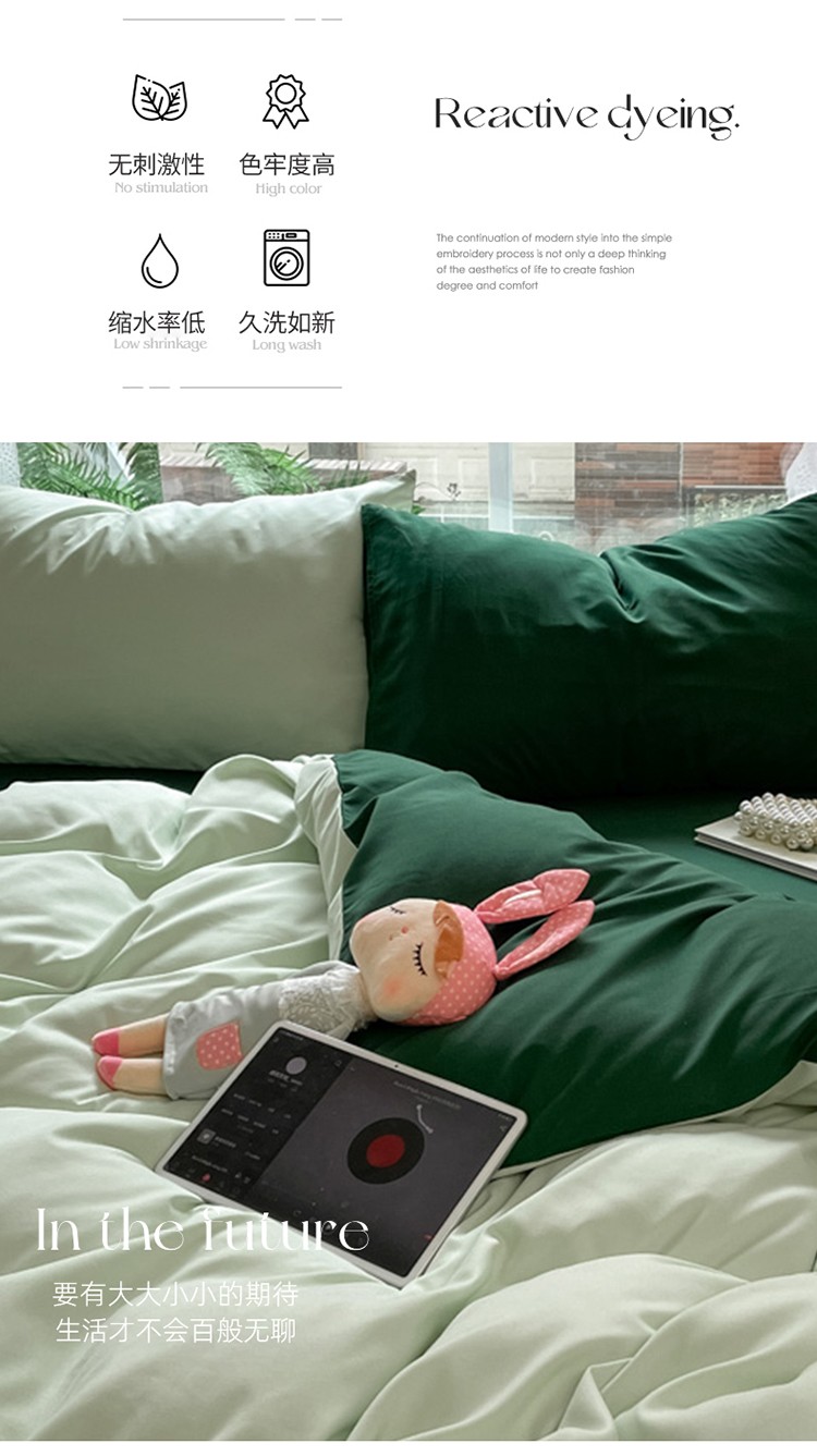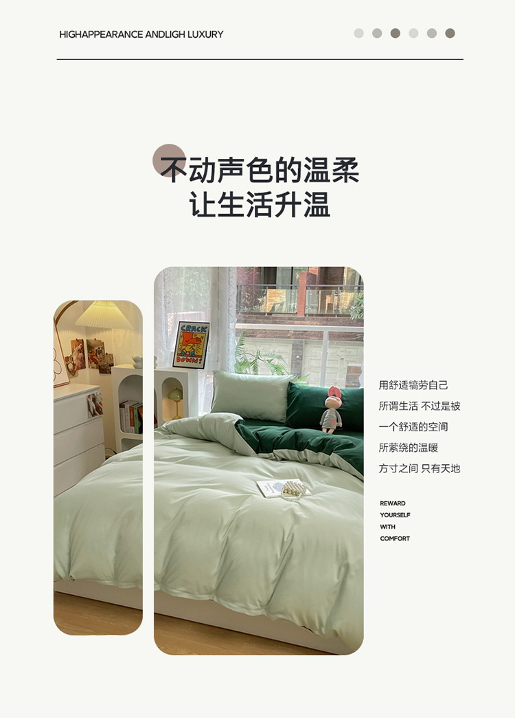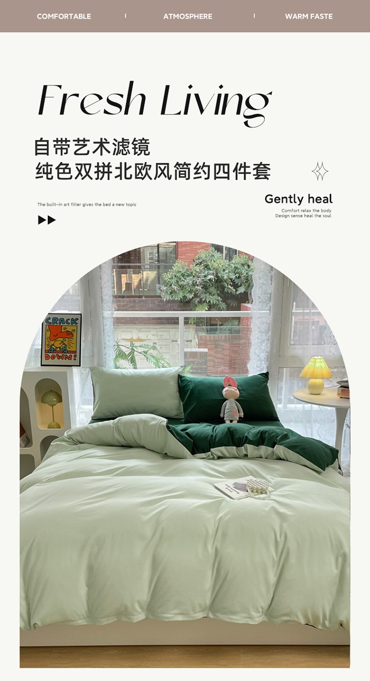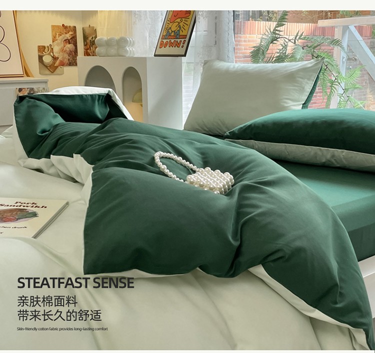 当前位置: 91家纺网 > 商品网购 > 床品套件 > 四件套 > 全棉普通四件套 > 阿曼达 2023年新款纯色双拼北欧风简约四件套 绿豆牛乳