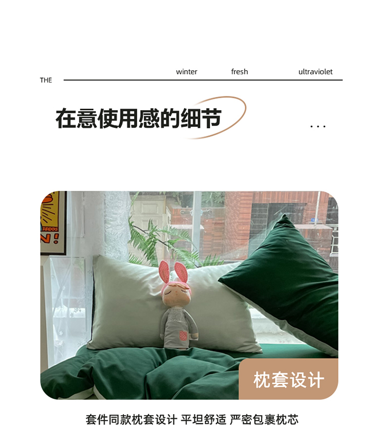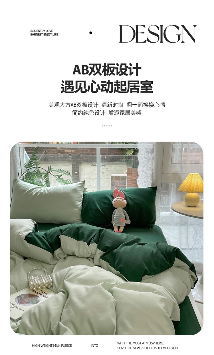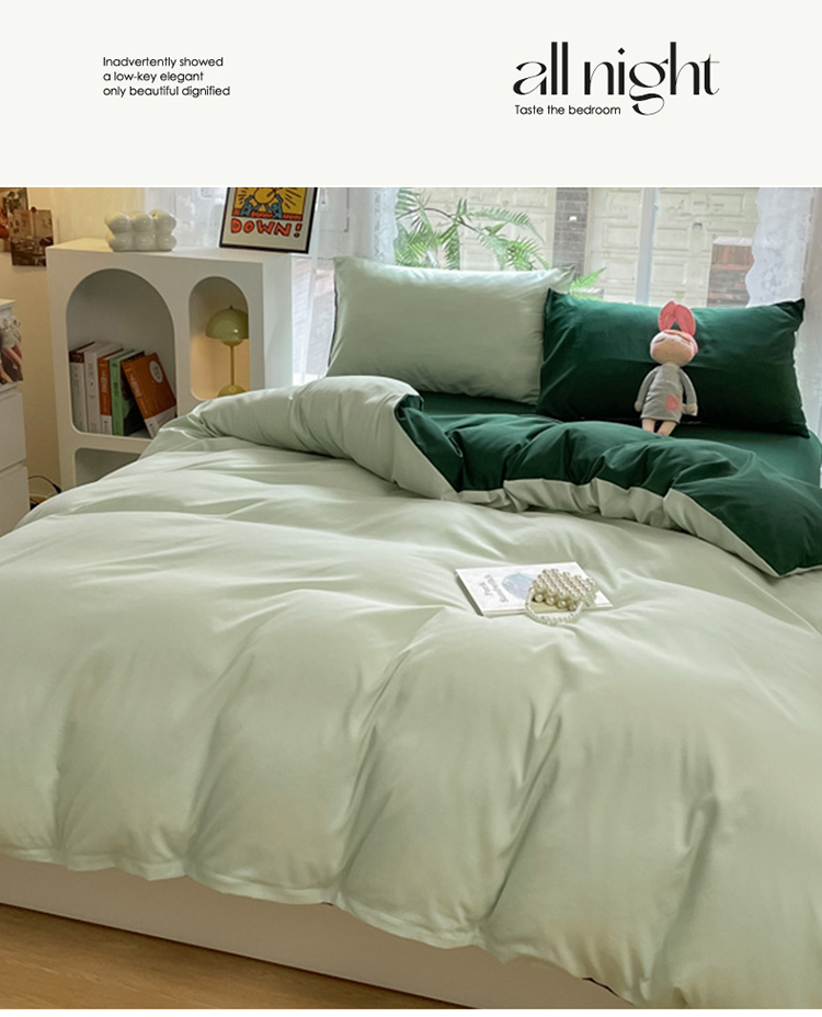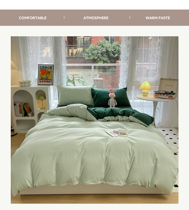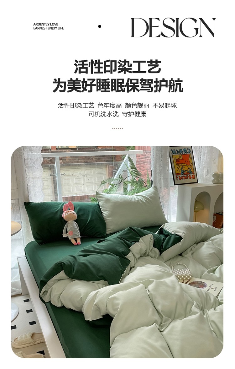 当前位置: 91家纺网 > 商品网购 > 床品套件 > 四件套 > 全棉普通四件套 > 阿曼达 2023年新款纯色双拼北欧风简约四件套 绿豆牛乳