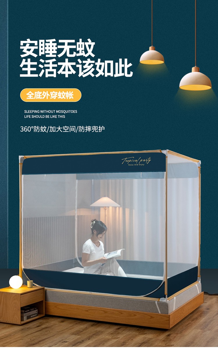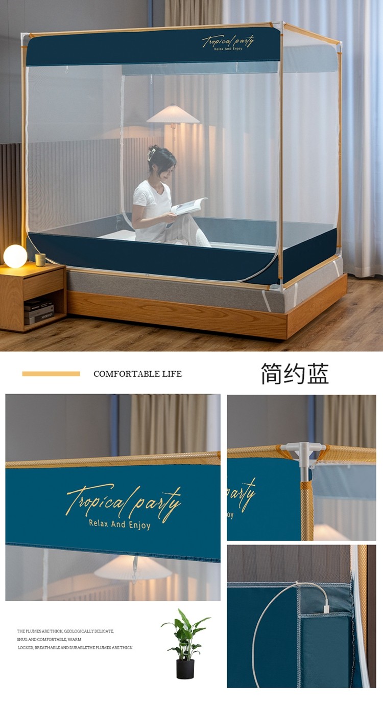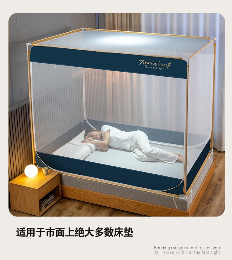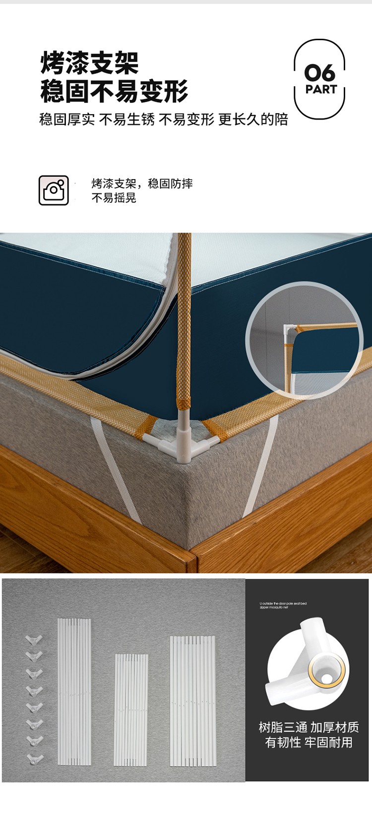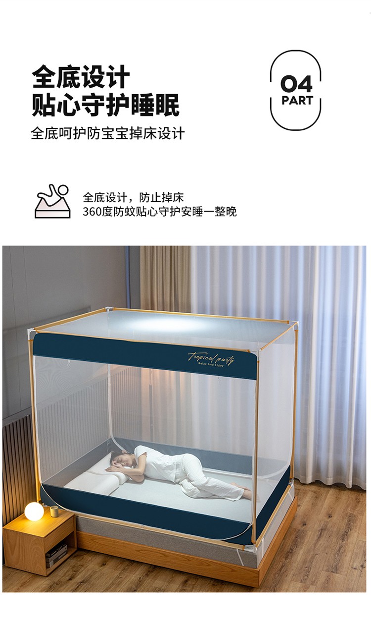 商品名称:青竹苑 2023新款双门全底外穿坐床式蚊帐儿童防摔防蚊拉链方帐 简约蓝
