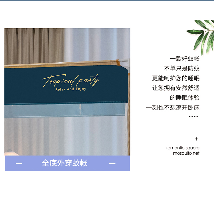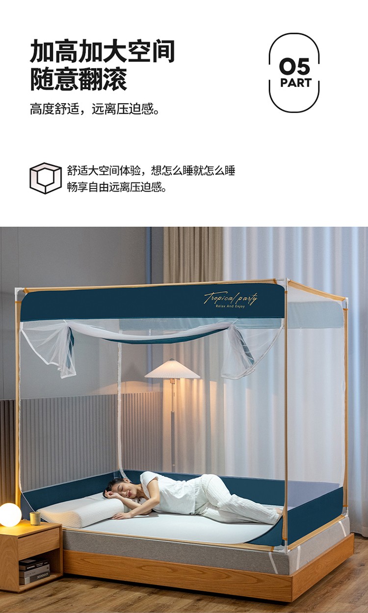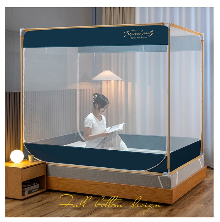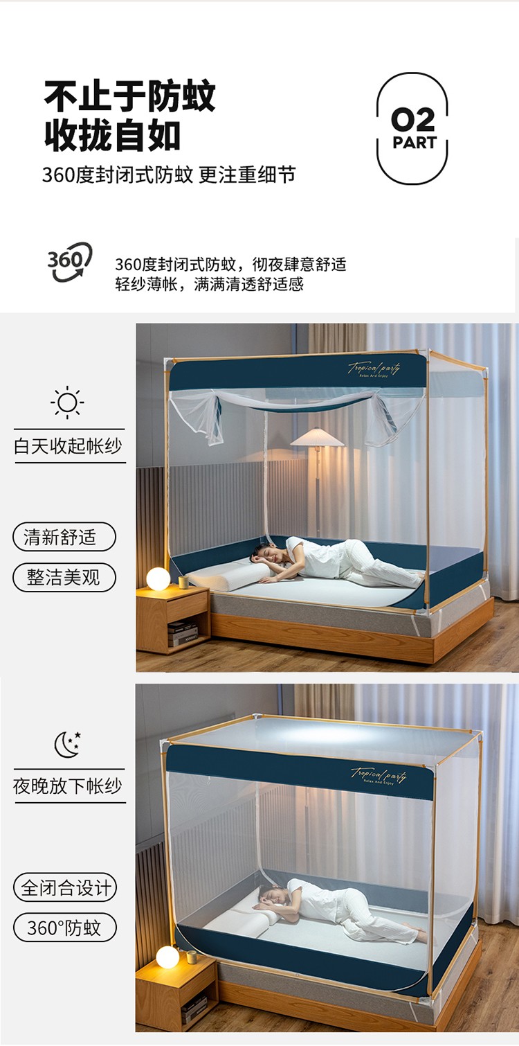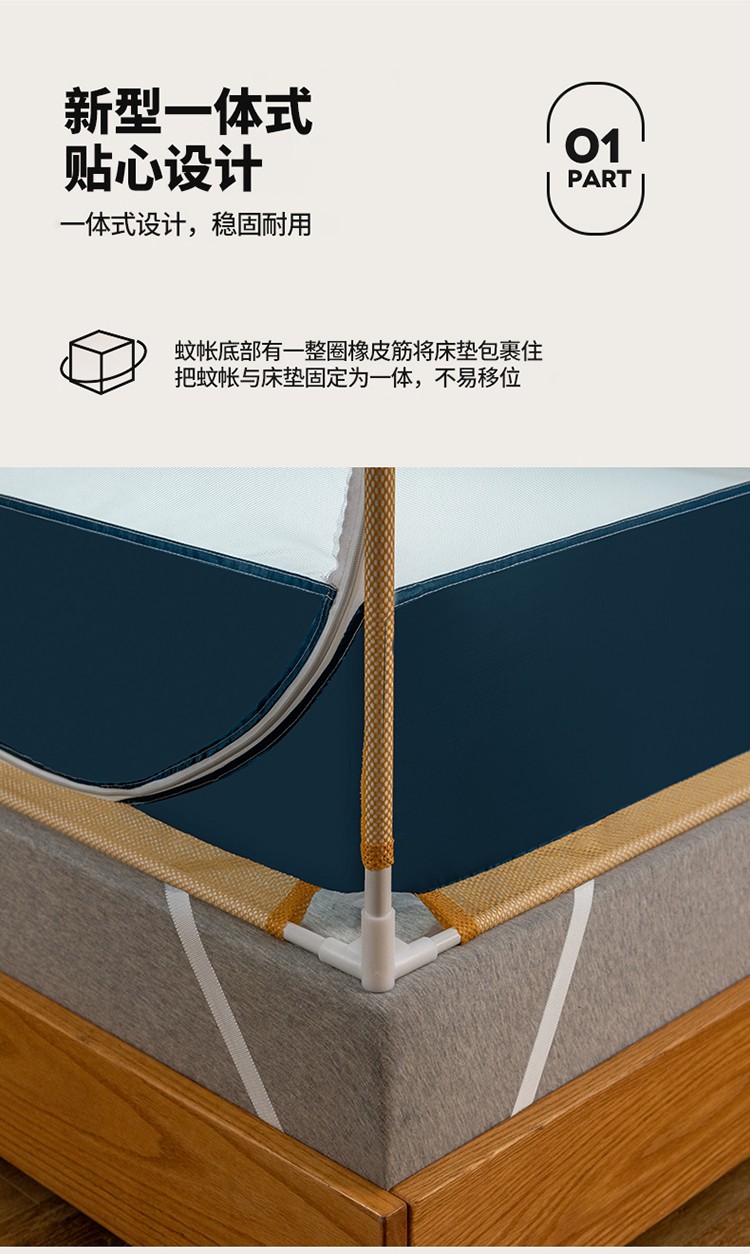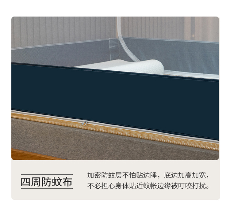 商品名称:青竹苑 2023新款双门全底外穿坐床式蚊帐儿童防摔防蚊拉链方帐 简约蓝