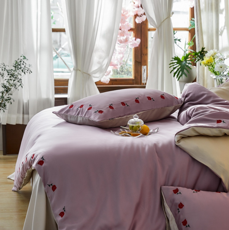 时亿家居 2023新款佳人有约系列60S天丝绣花四件套 佳人有约浅紫