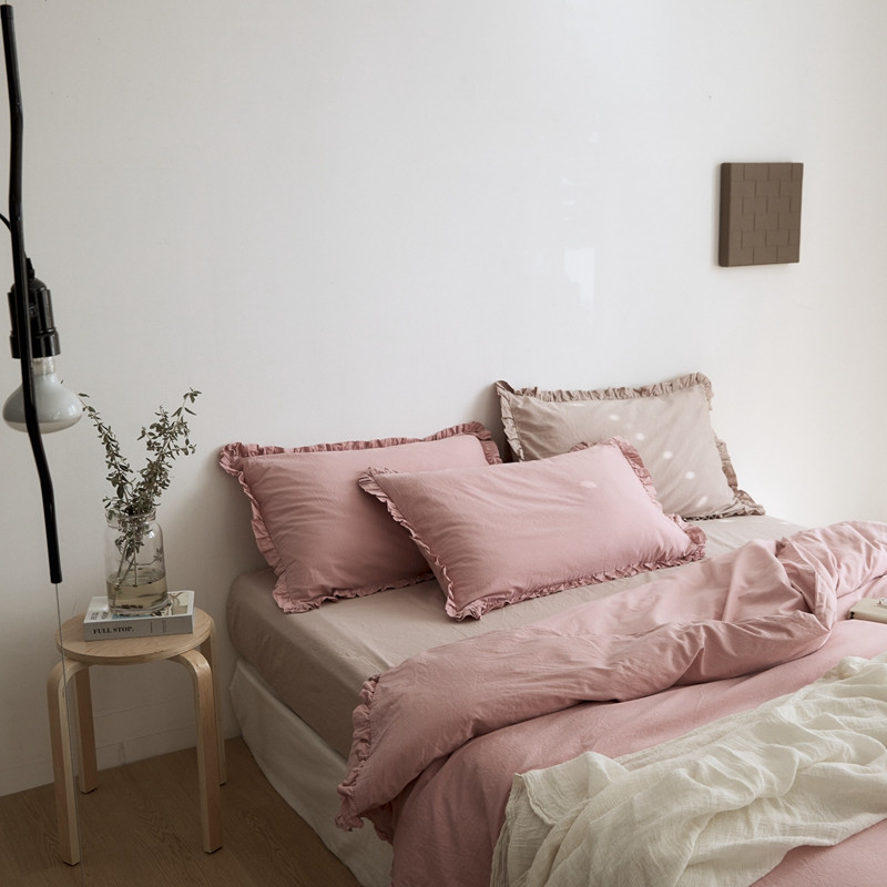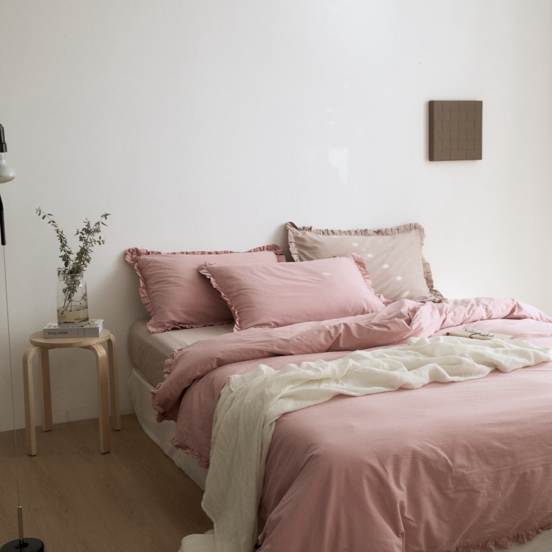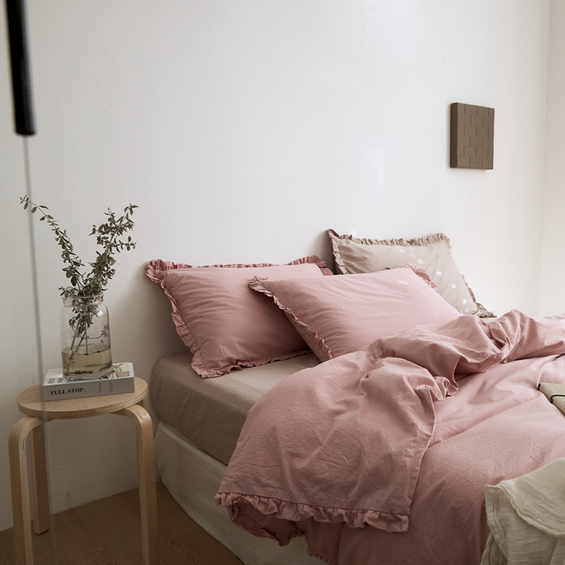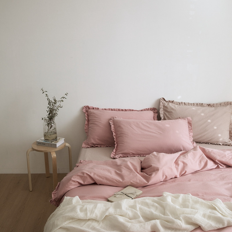 当前位置: 91家纺网 > 商品网购 > 床品套件 > 四件套 > 全棉普通四件套 > 新款13372全棉日系褶皱边四件套 春野粉