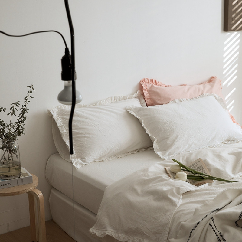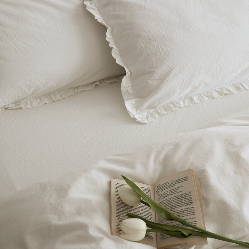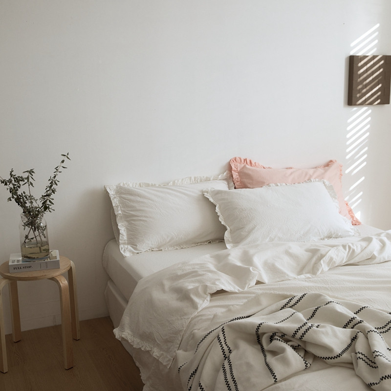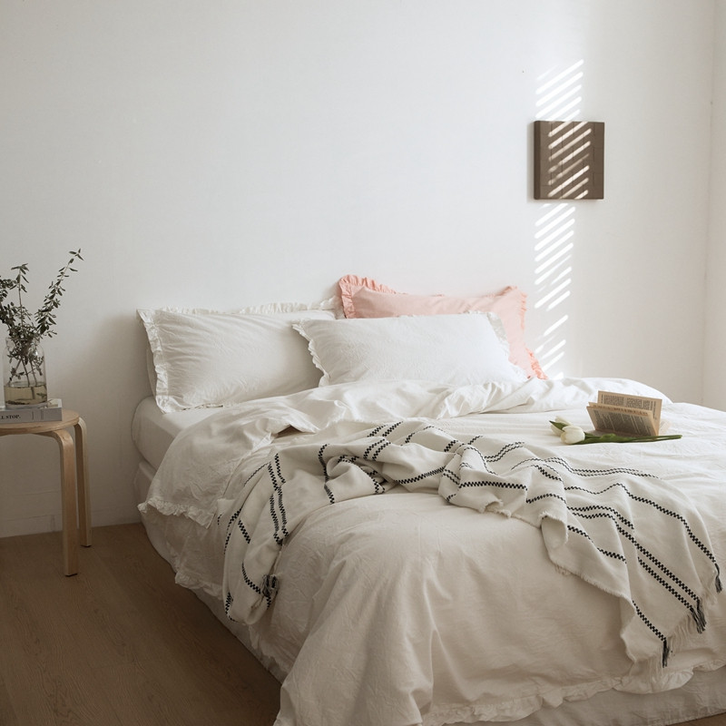 当前位置: 91家纺网 > 商品网购 > 床品套件 > 四件套 > 全棉普通四件套 > 新款13372全棉日系褶皱边四件套 月白色