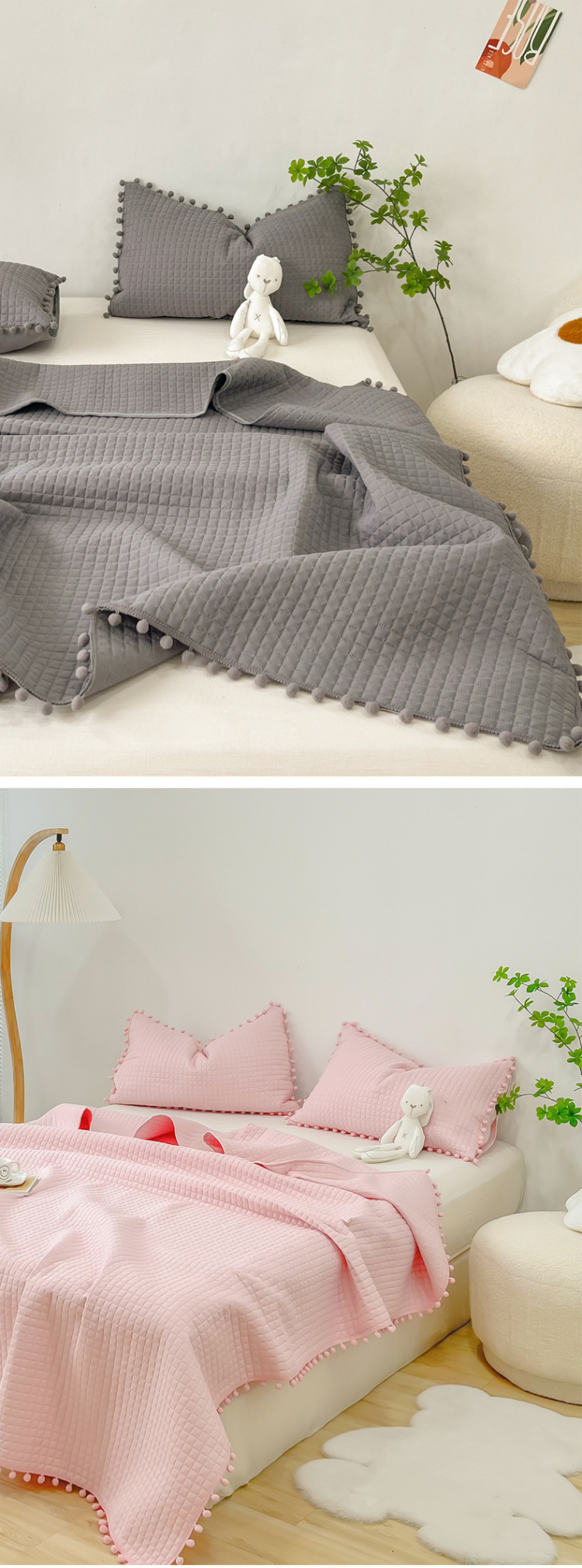 (总)乐卧家居 2026新款韩国INS风简约时尚绗缝荷叶边夏被,白色,粉色,黄色,灰色,蓝色,绿色,紫色,深紫
