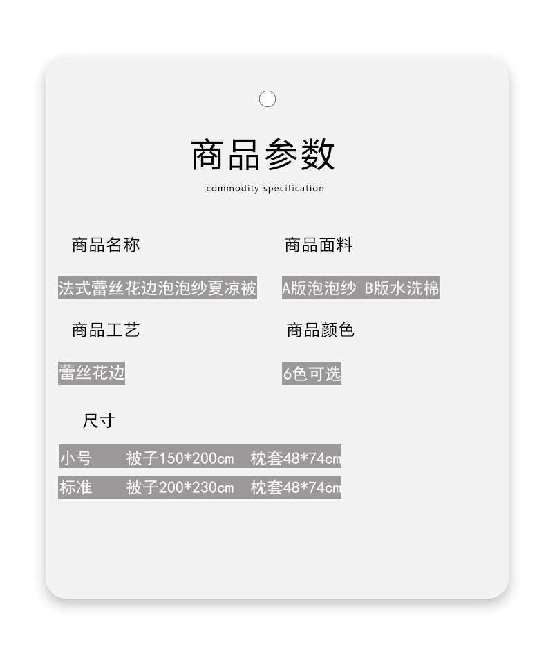 200*230cm夏被四件套 | ¥102.00 |