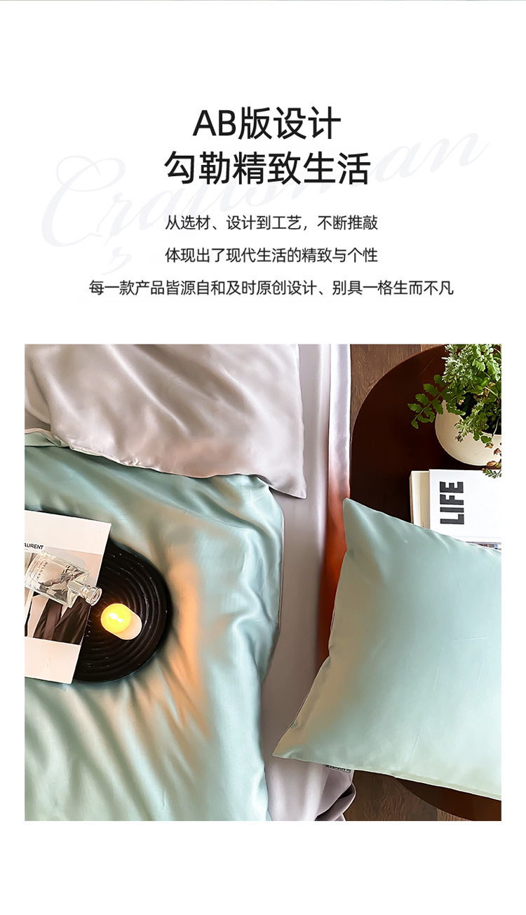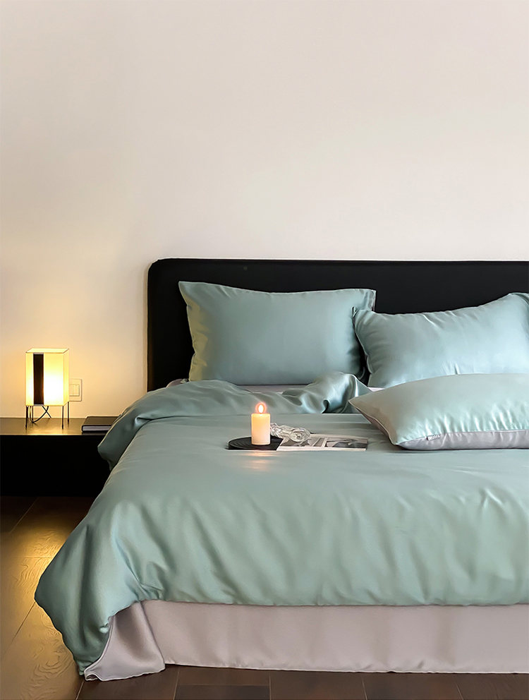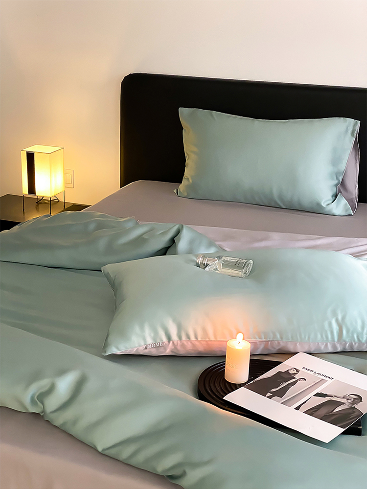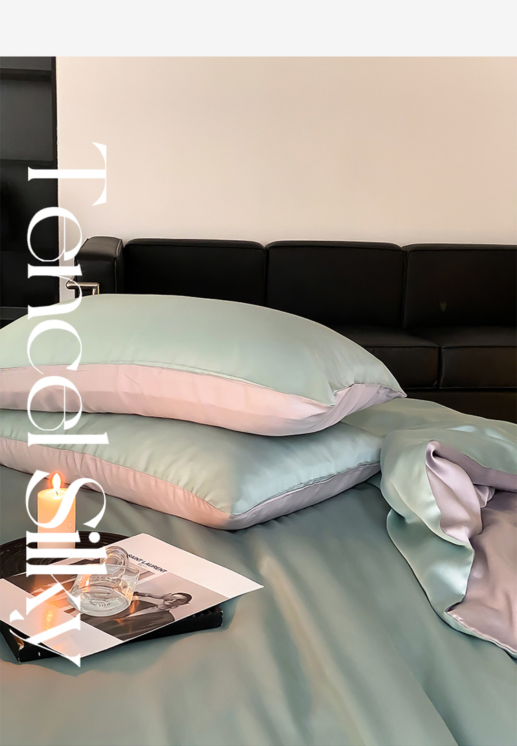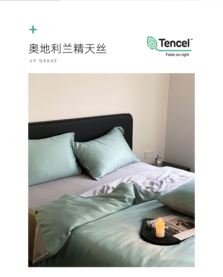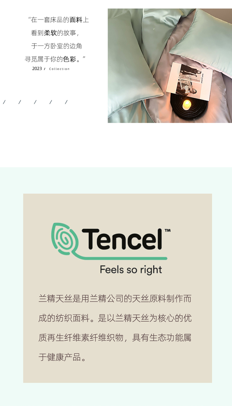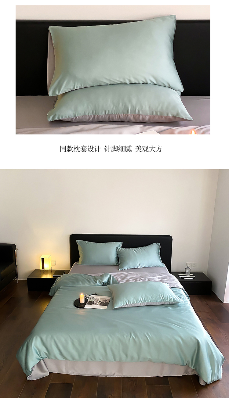 商品名称:时亿2023新款兰精60天丝素色双拼四件套 水漾绿