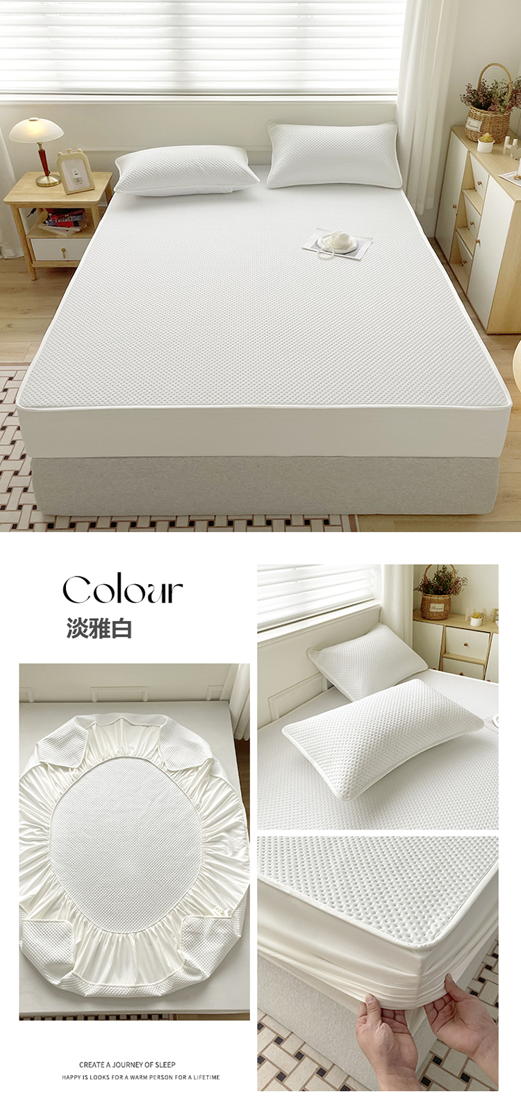 商品名称:忘忧草 2023新款A类针织棉夹棉防水床笠 淡雅白