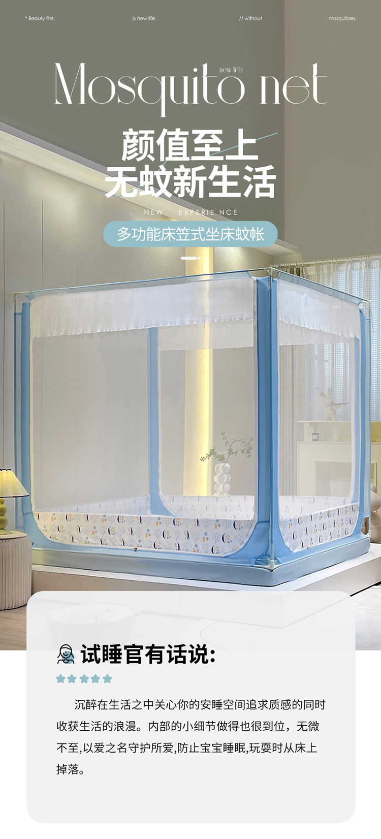 商品名称:安金 2023新款多功能家用外穿杆床笠式防摔坐床蚊帐 铃兰花语