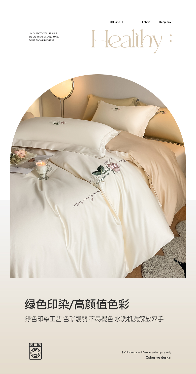 (总)秀色家纺 2025新款轻奢60支贡缎长绒纯棉四件套全棉简约清新刺绣花被套床单高级感,唤醒-奶昔白+茱萸粉,唤醒-天空蓝+茱萸粉,唤醒-奶昔白+天空蓝,唤醒-奶昔白+香槟金,唤醒-茱萸粉+烟墨灰,奶昔白+丁香,奶昔白+莺茶绿,茱萸粉+丁香,莺茶绿+香槟金,香槟金+烟墨灰