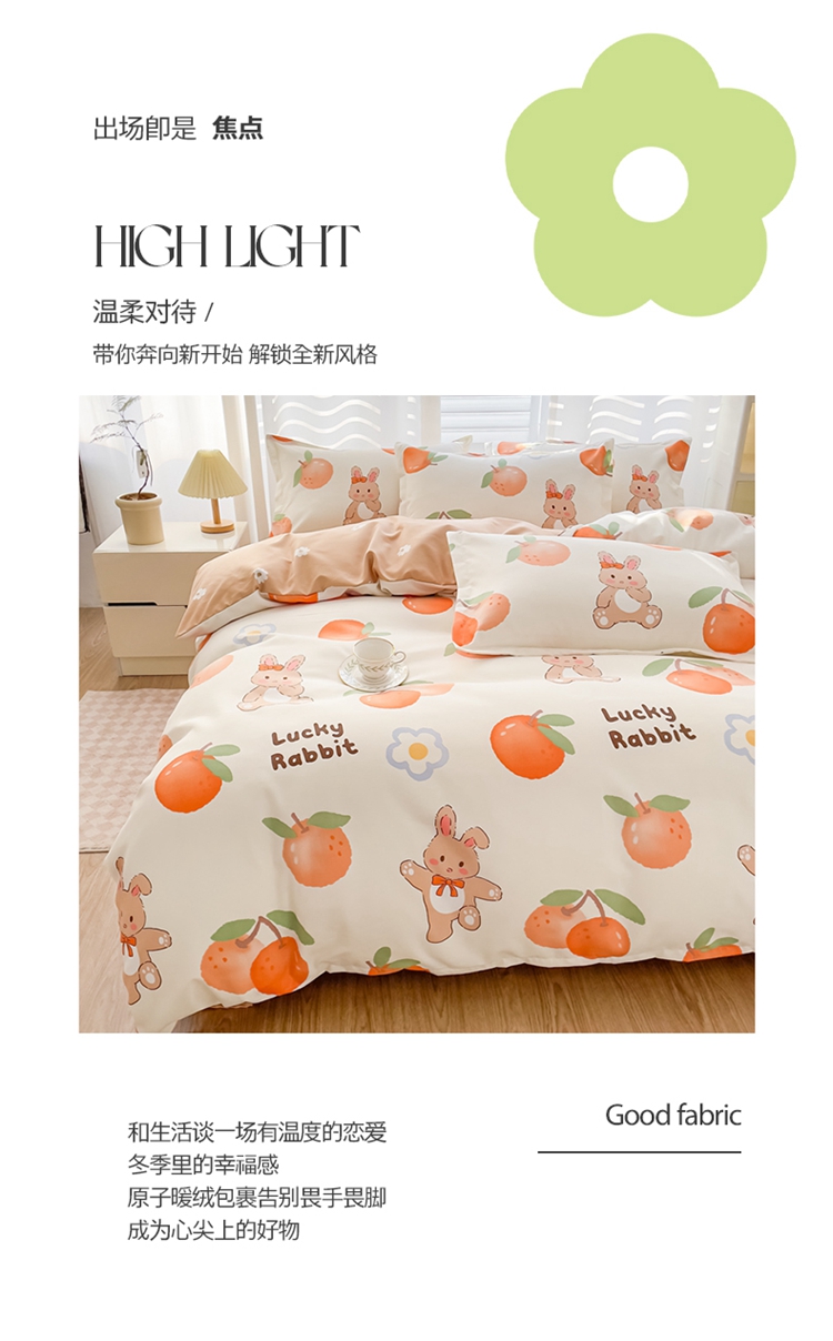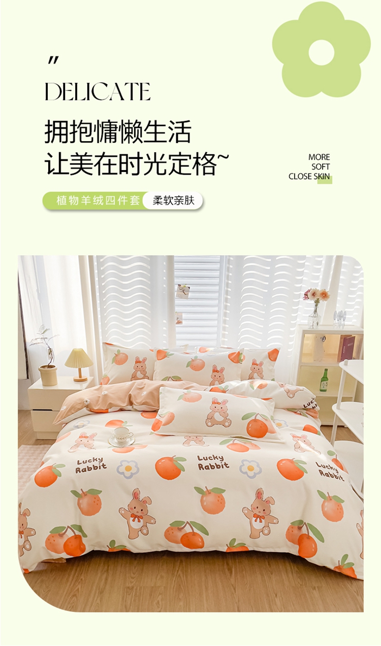 商品名称:棠颂 2023新款臻棉植物羊绒四件套 田园兔