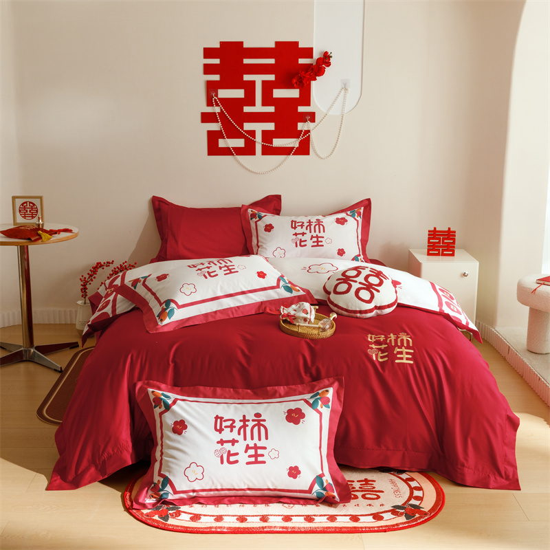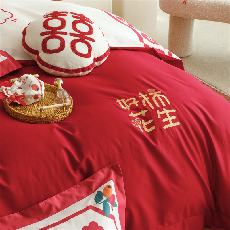 (总)江涞 2025新款高克重牛奶绒刺绣四件套-花月,花月-高级红