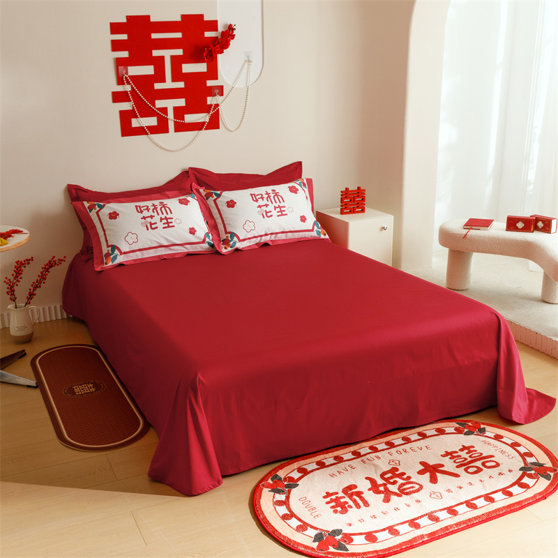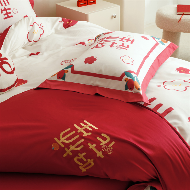 (总)江涞 2025新款高克重牛奶绒贴布绣流苏四件套-福娃,福娃-高级红