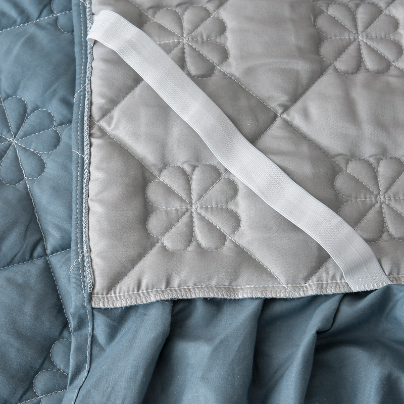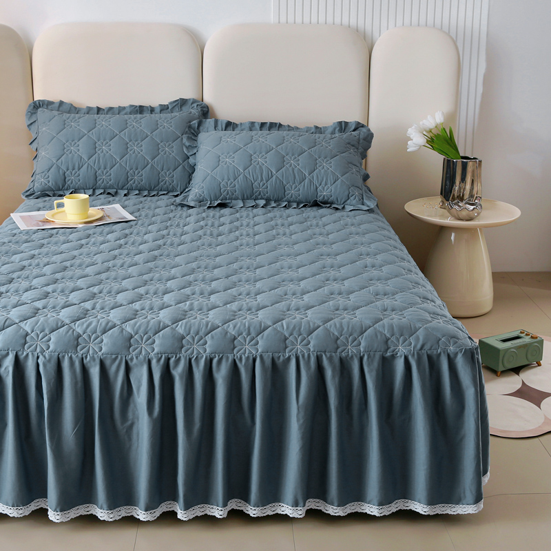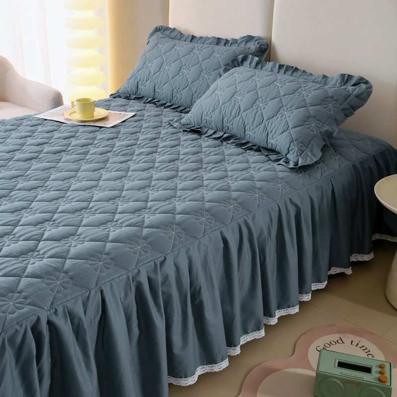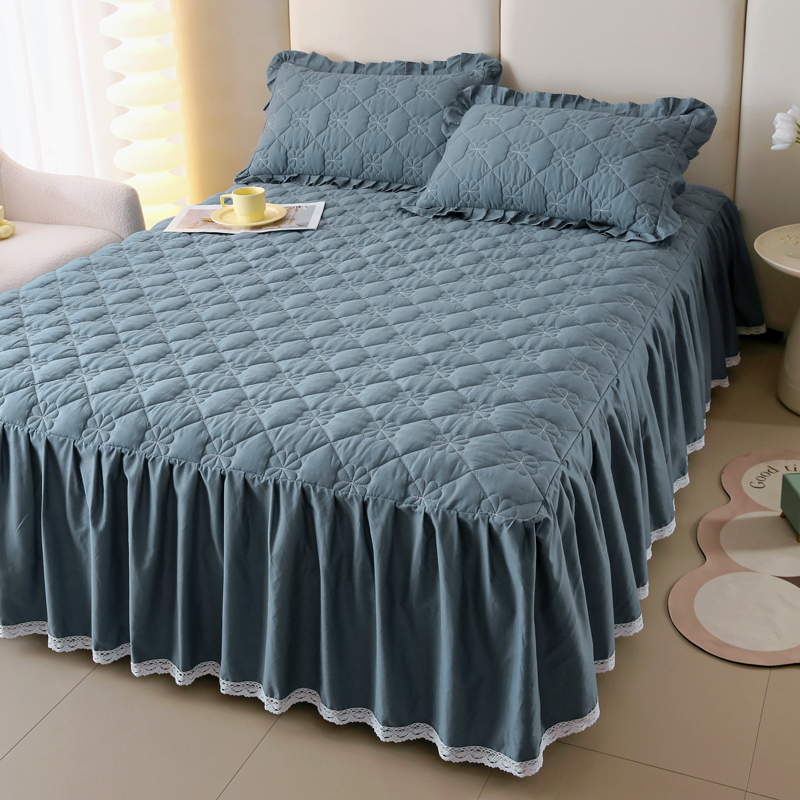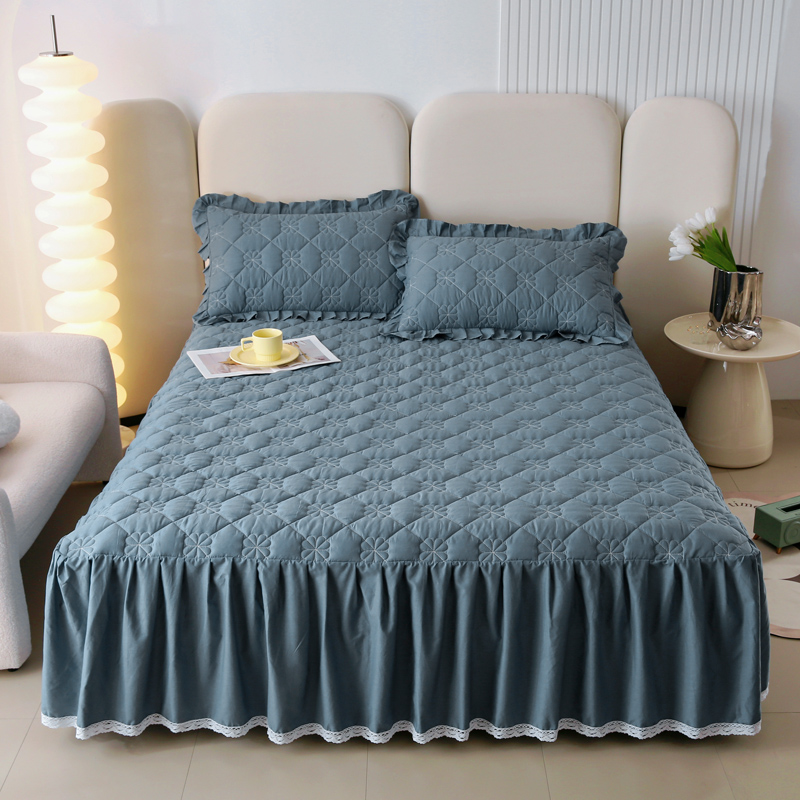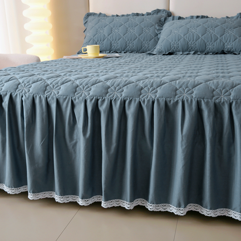 情煊 2023新款全棉夹棉纯色印花床裙款(可定制尺寸) 灰蓝