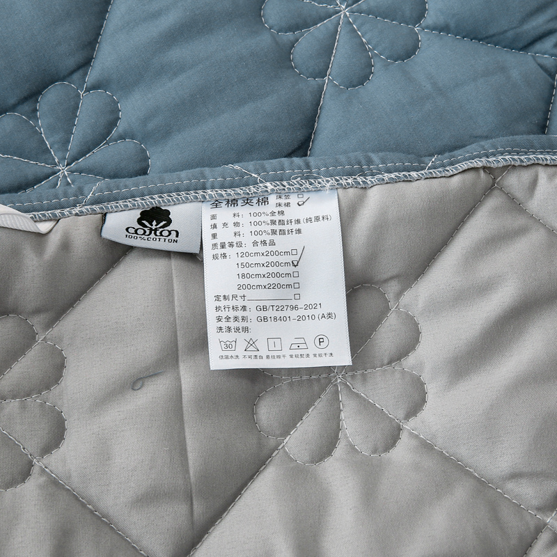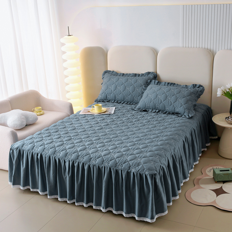 • 91家纺网 家纺一手货源 找家纺 情煊 2023新款全棉夹棉纯色印花床裙款(可定制尺寸) 灰蓝
