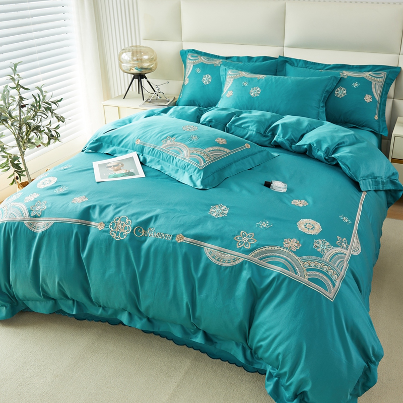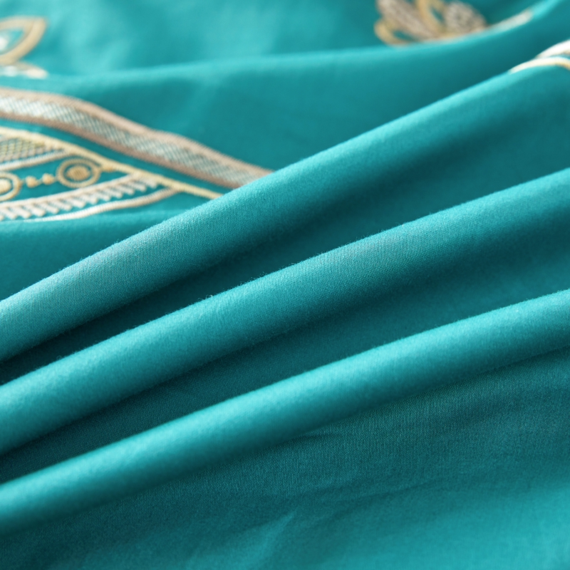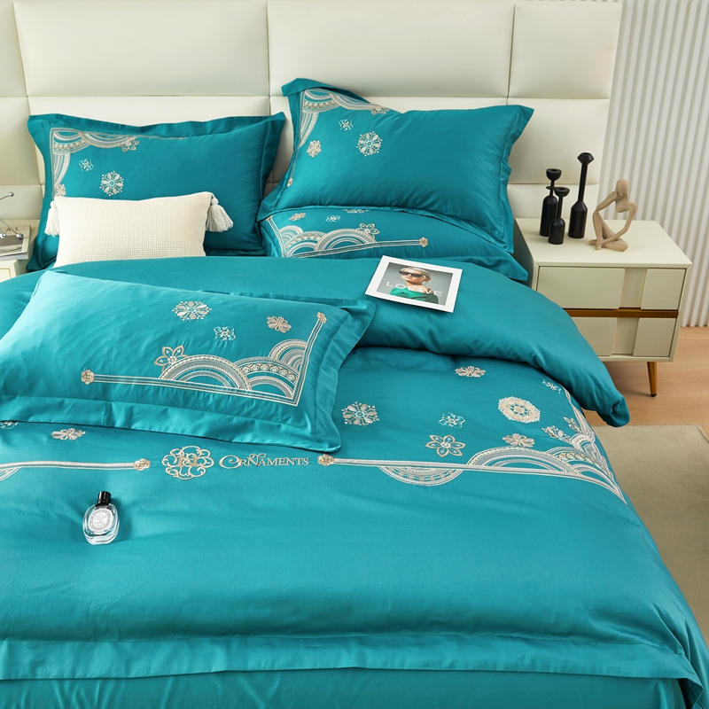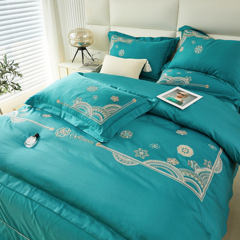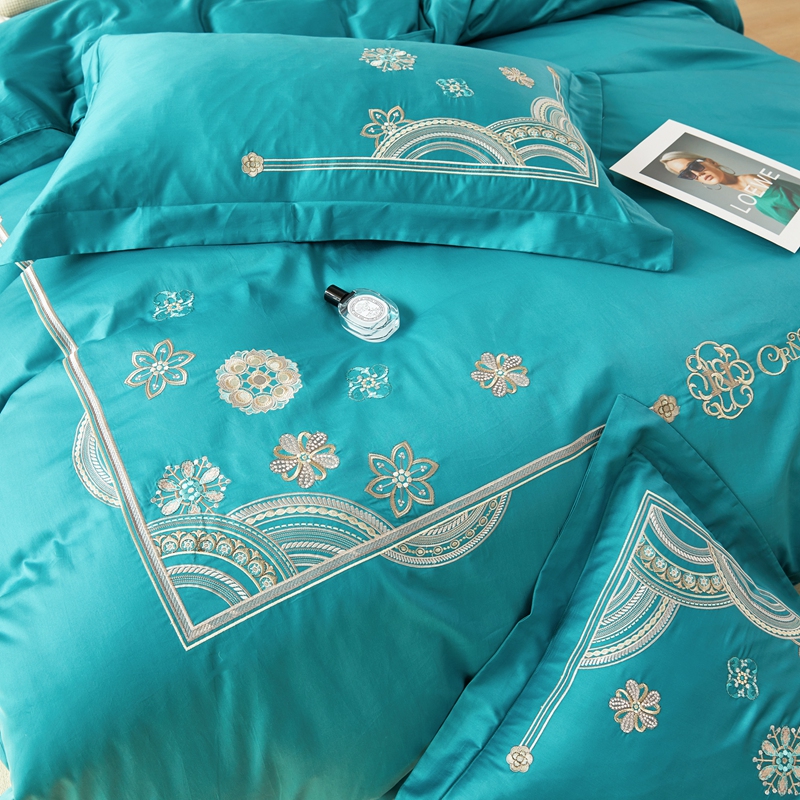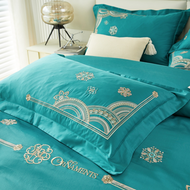 商品名称:星尚 2023新款100支长绒棉绣花四件套-慕颜 孔雀绿