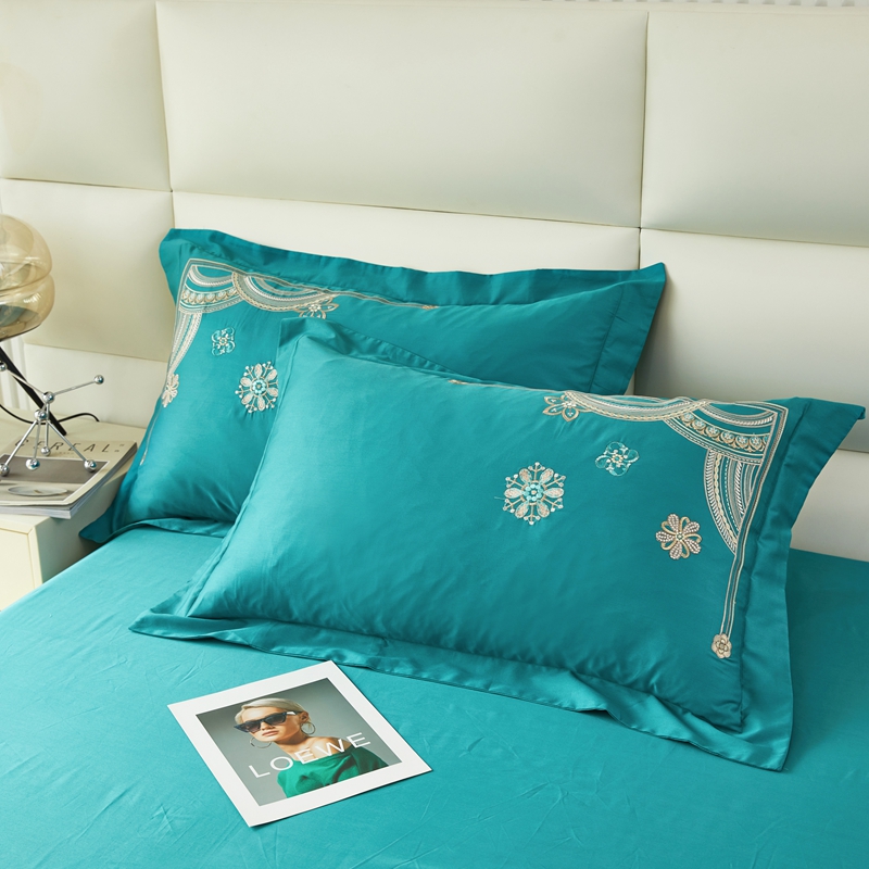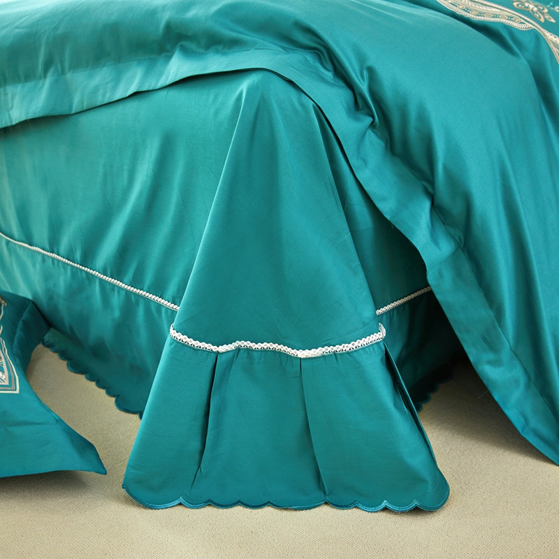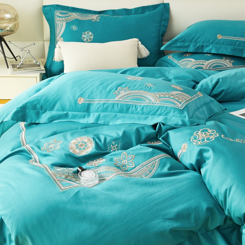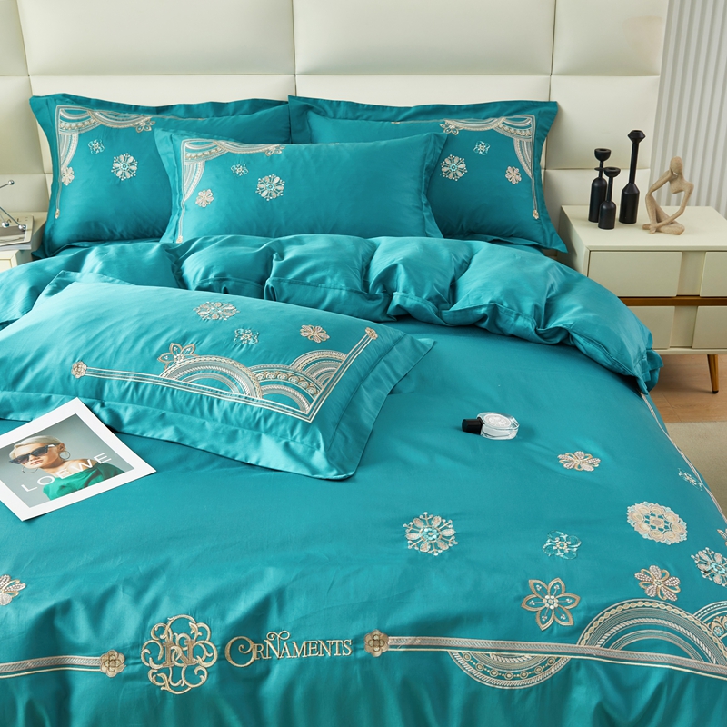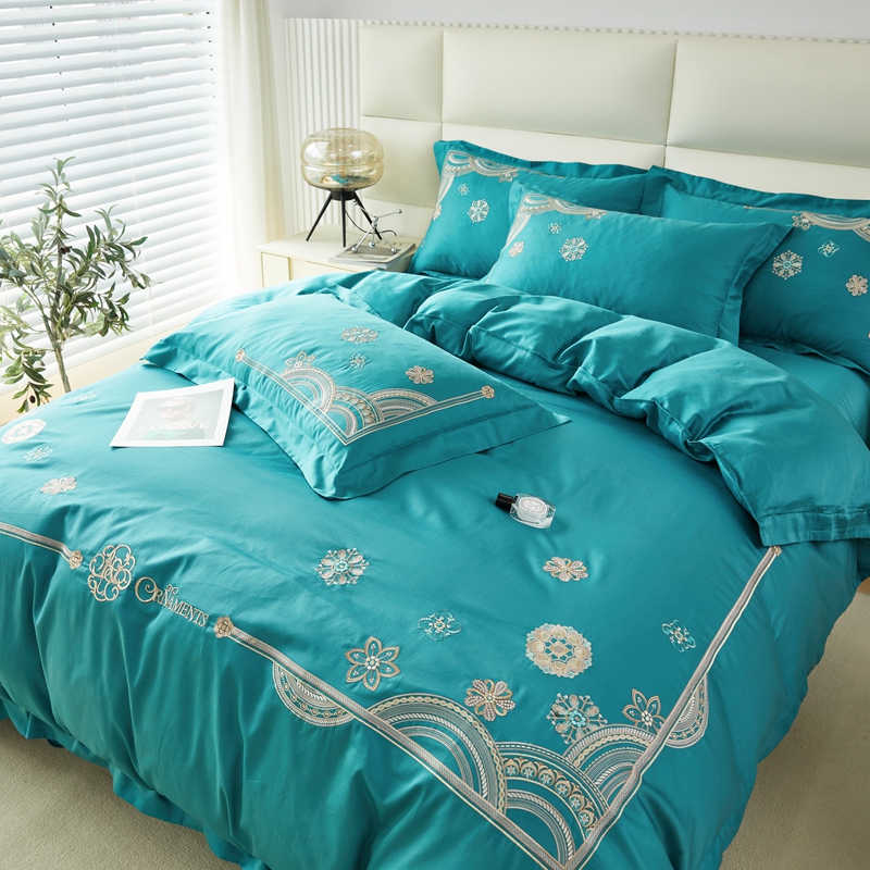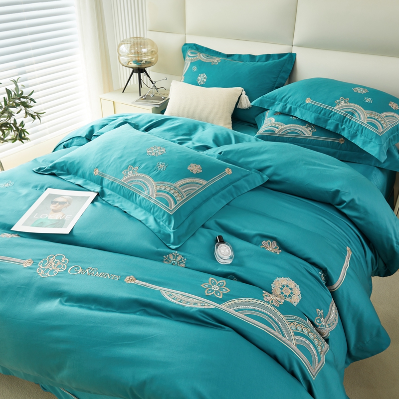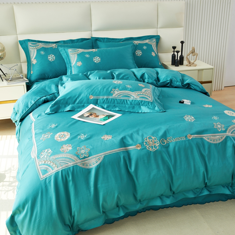 商品名称:星尚 2023新款100支长绒棉绣花四件套-慕颜 孔雀绿
