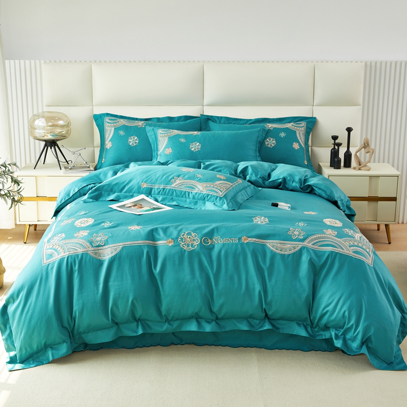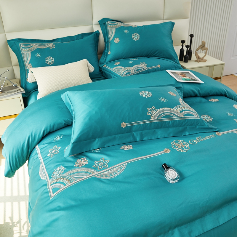 星尚 2023新款100支长绒棉绣花四件套-慕颜 孔雀绿