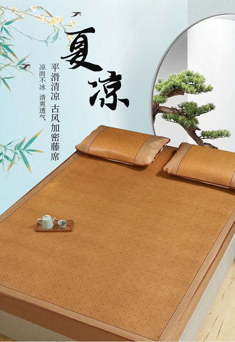 (总)航途席业 2025新款包边抗菌冰藤席冰藤凉席,冰藤格纹,冰藤繁华 ,冰藤简意
