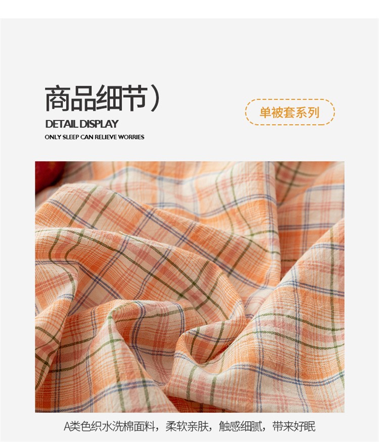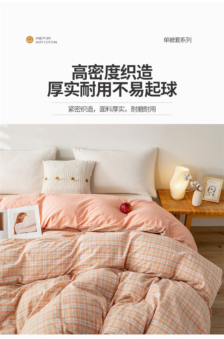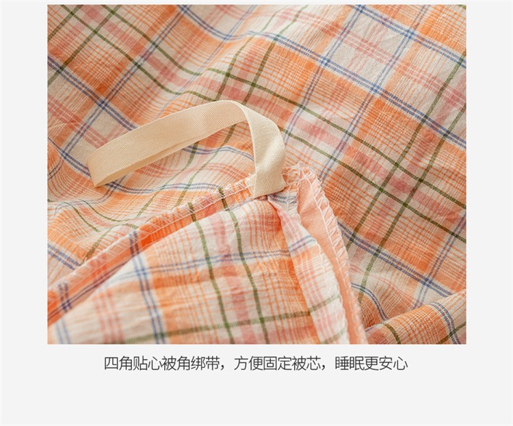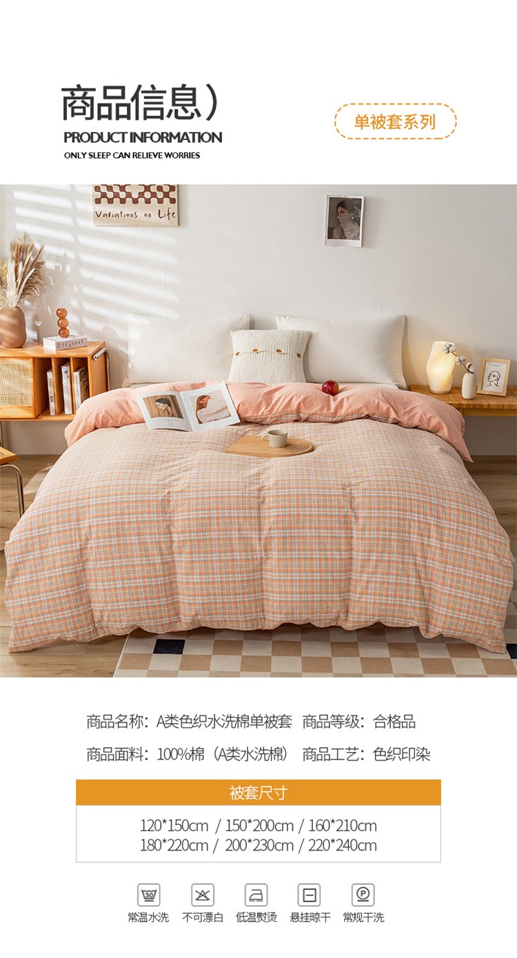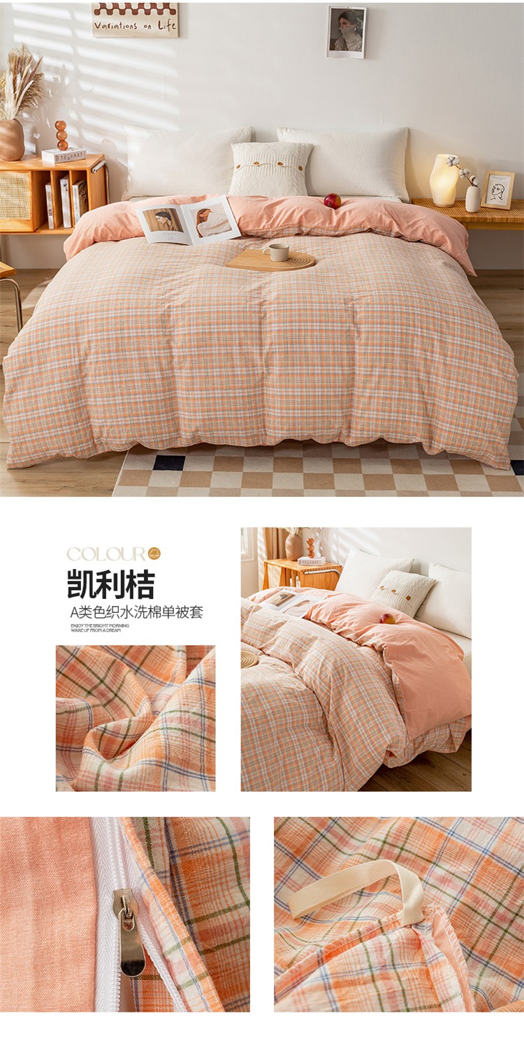 商品名称:九沐良品 新款A类色织水洗棉四件套单被套 凯利桔