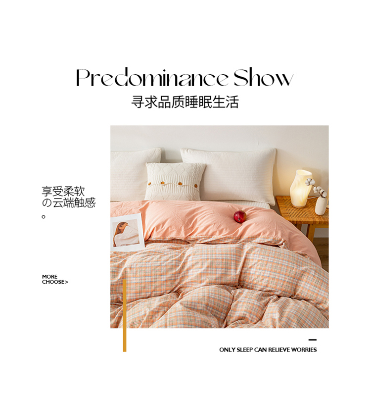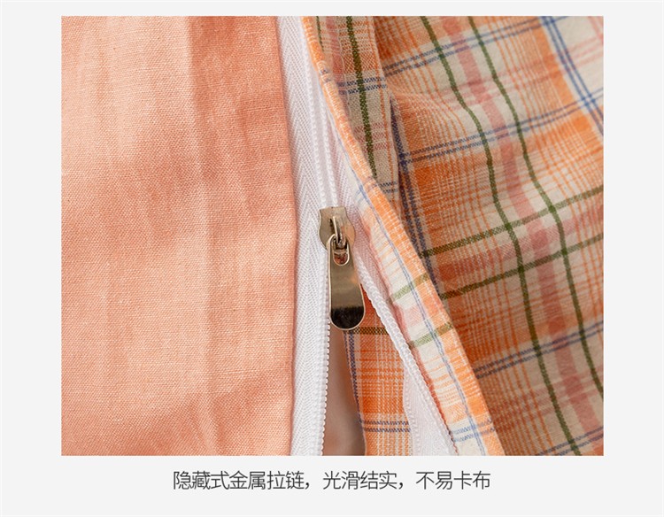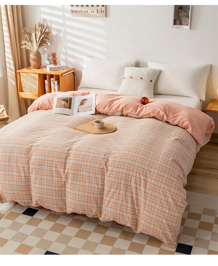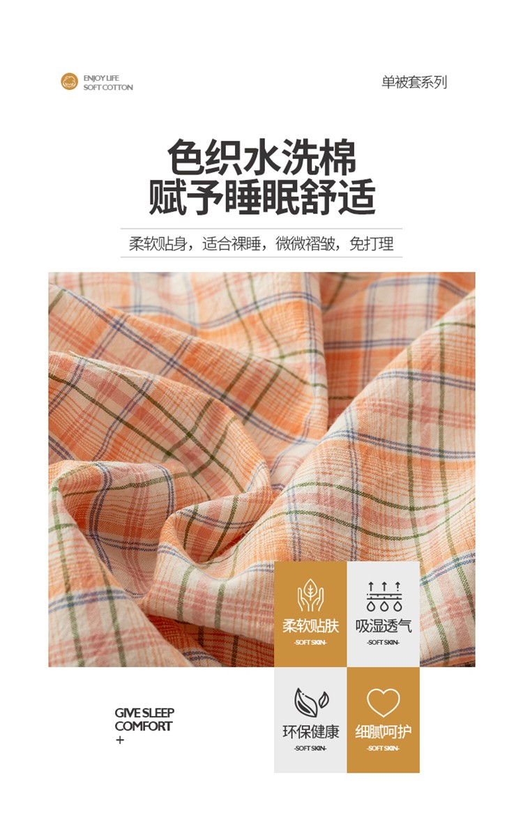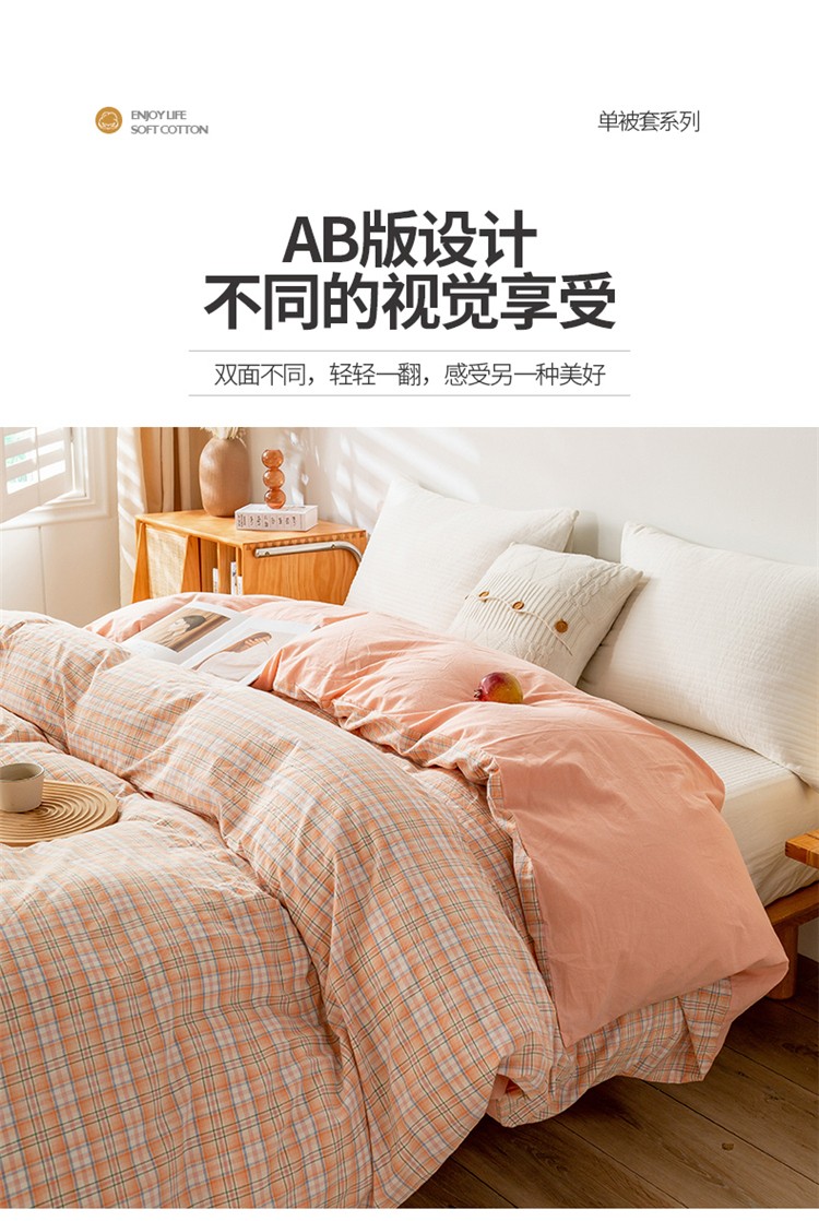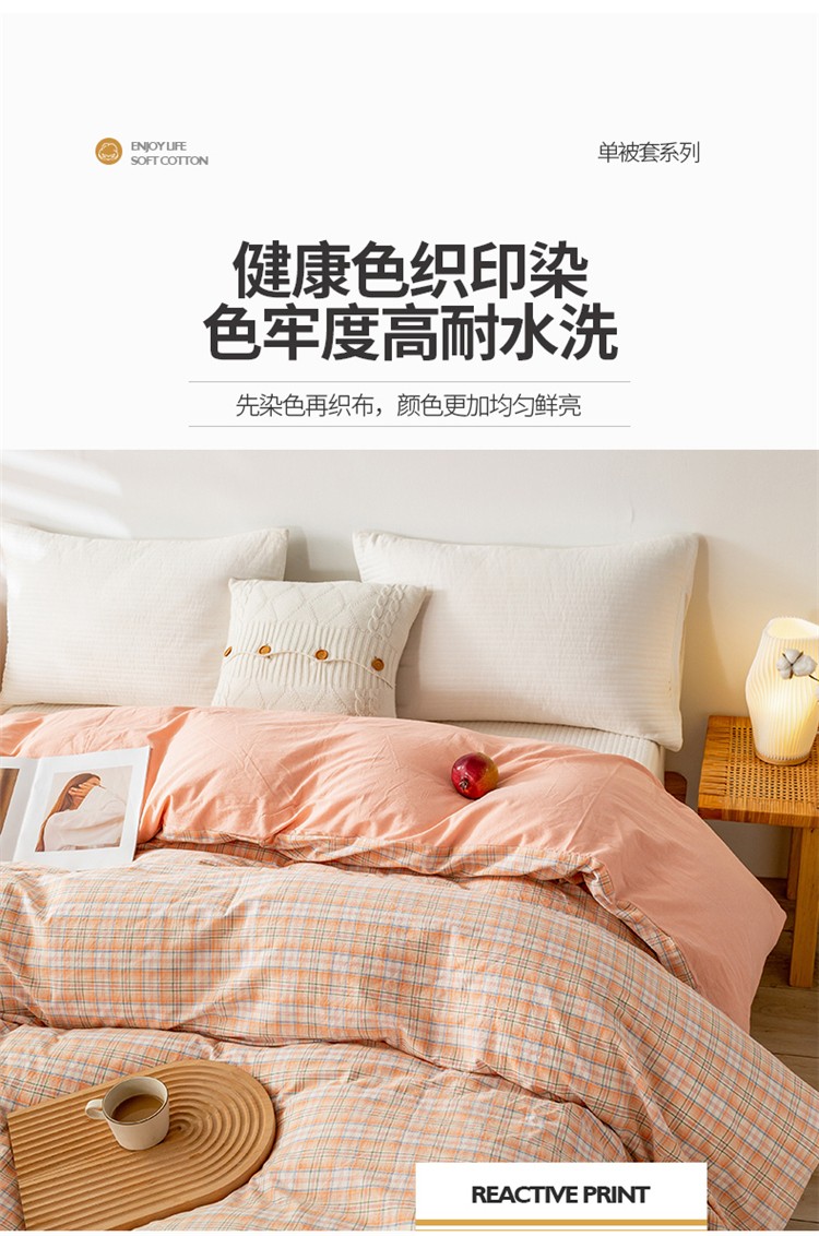 商品名称:九沐良品 新款A类色织水洗棉四件套单被套 凯利桔