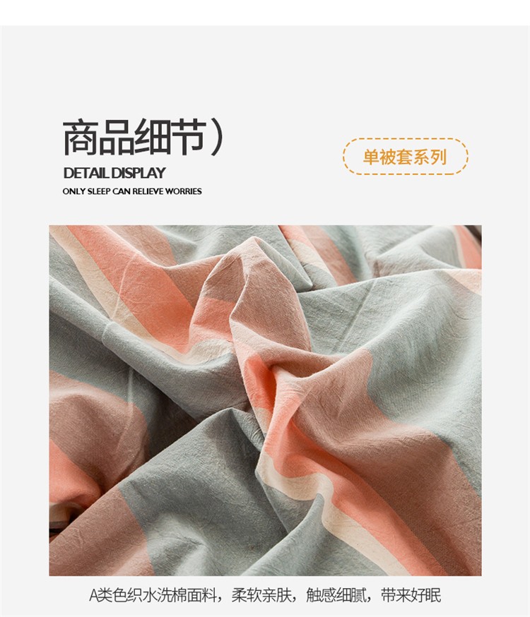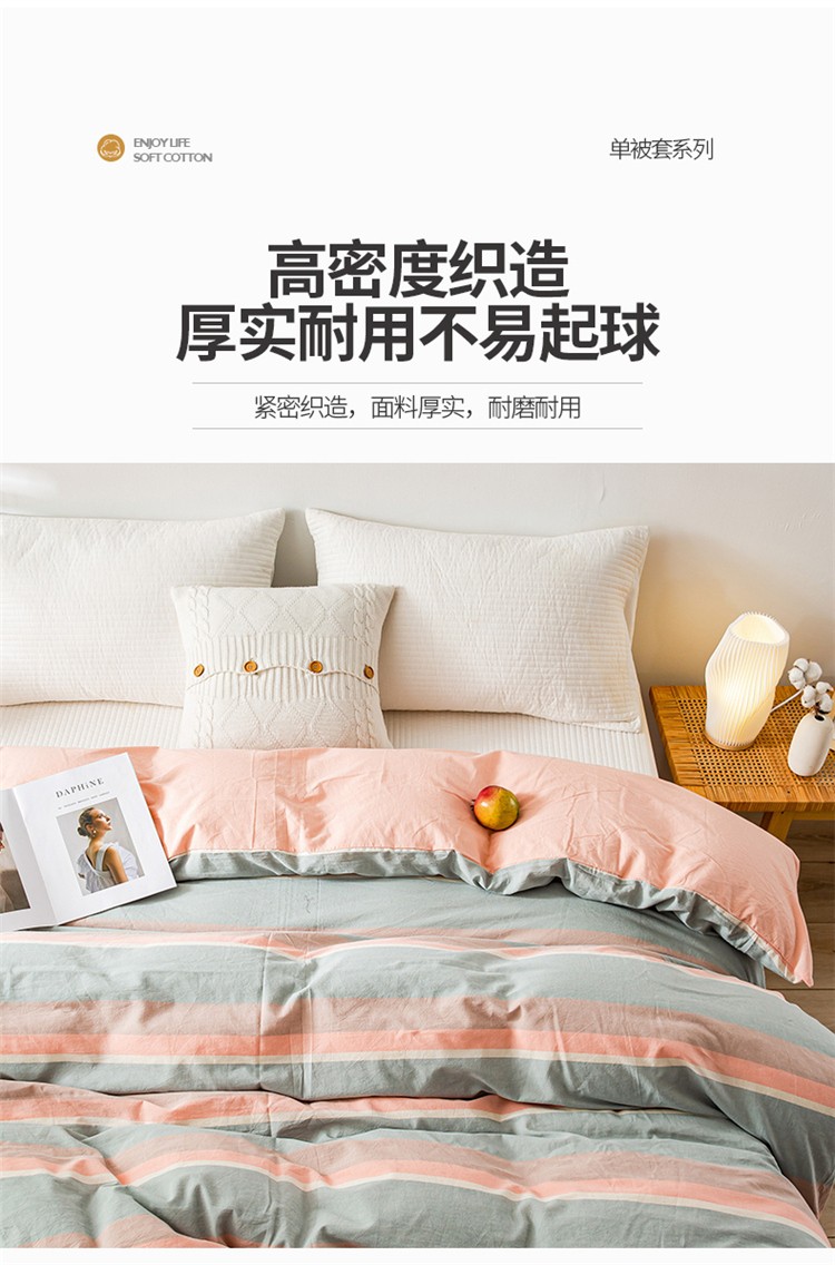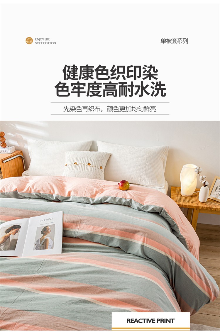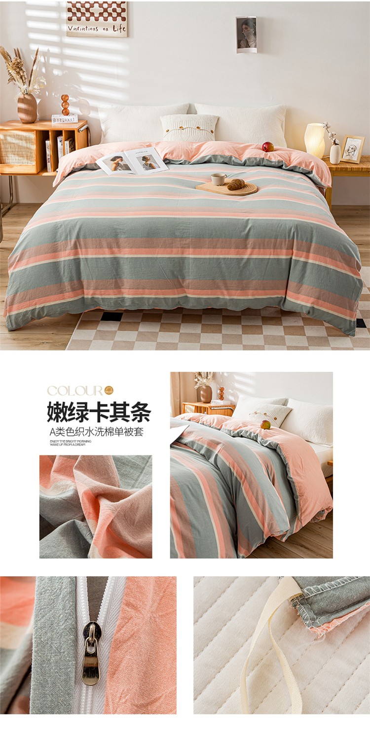 商品名称:九沐良品 新款A类色织水洗棉四件套单被套 嫩绿卡其条