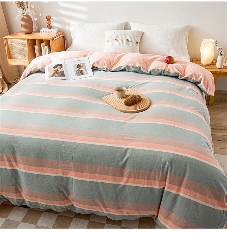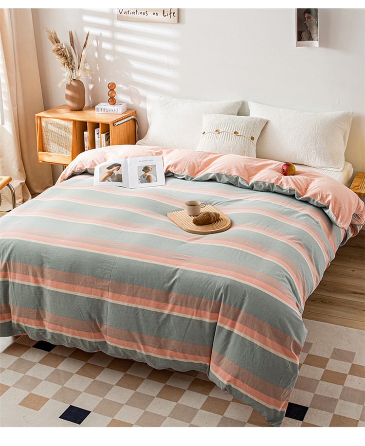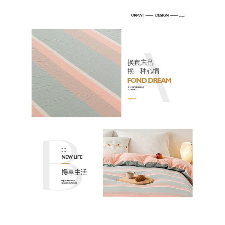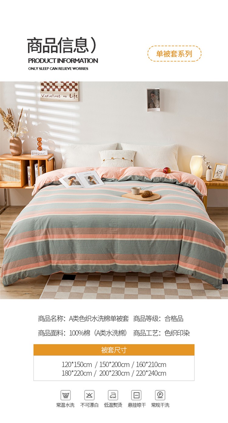 商品名称:九沐良品 新款A类色织水洗棉四件套单被套 嫩绿卡其条
