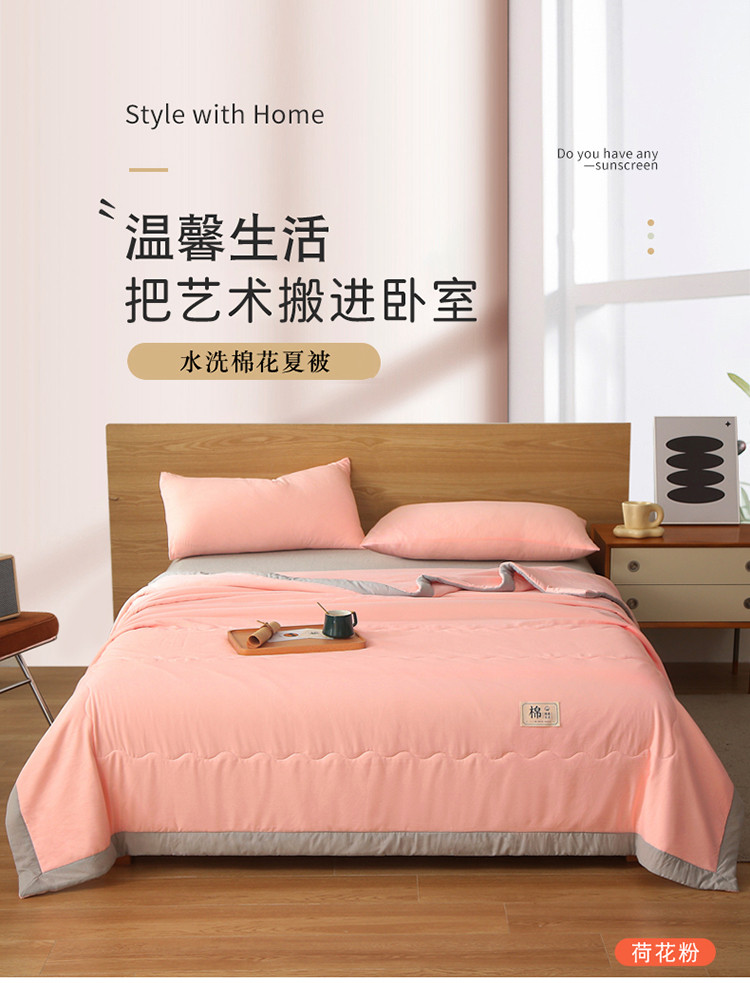 (总)猎鹿人家纺 2026新款纯色全棉水洗棉棉花夏被空调被,复古豆沙,莲藕粉,时尚灰,天青蓝,迷雾黑,月光白,组合
