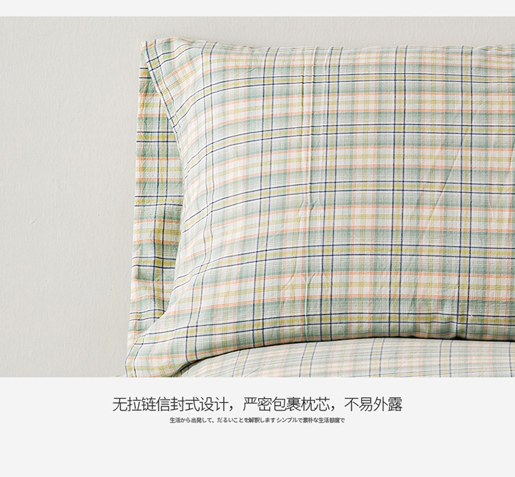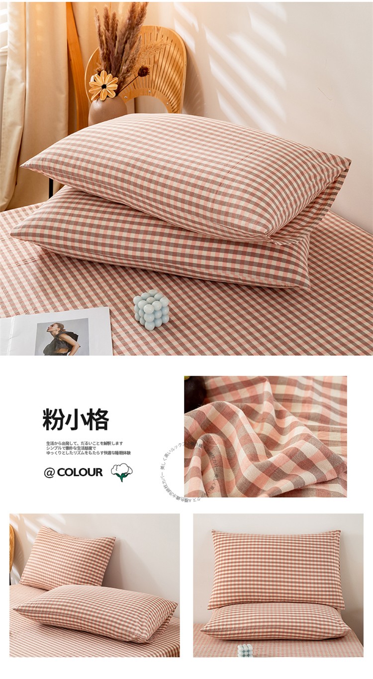 九沐良品 新款A类色织水洗棉四件套-单品枕套 粉小格