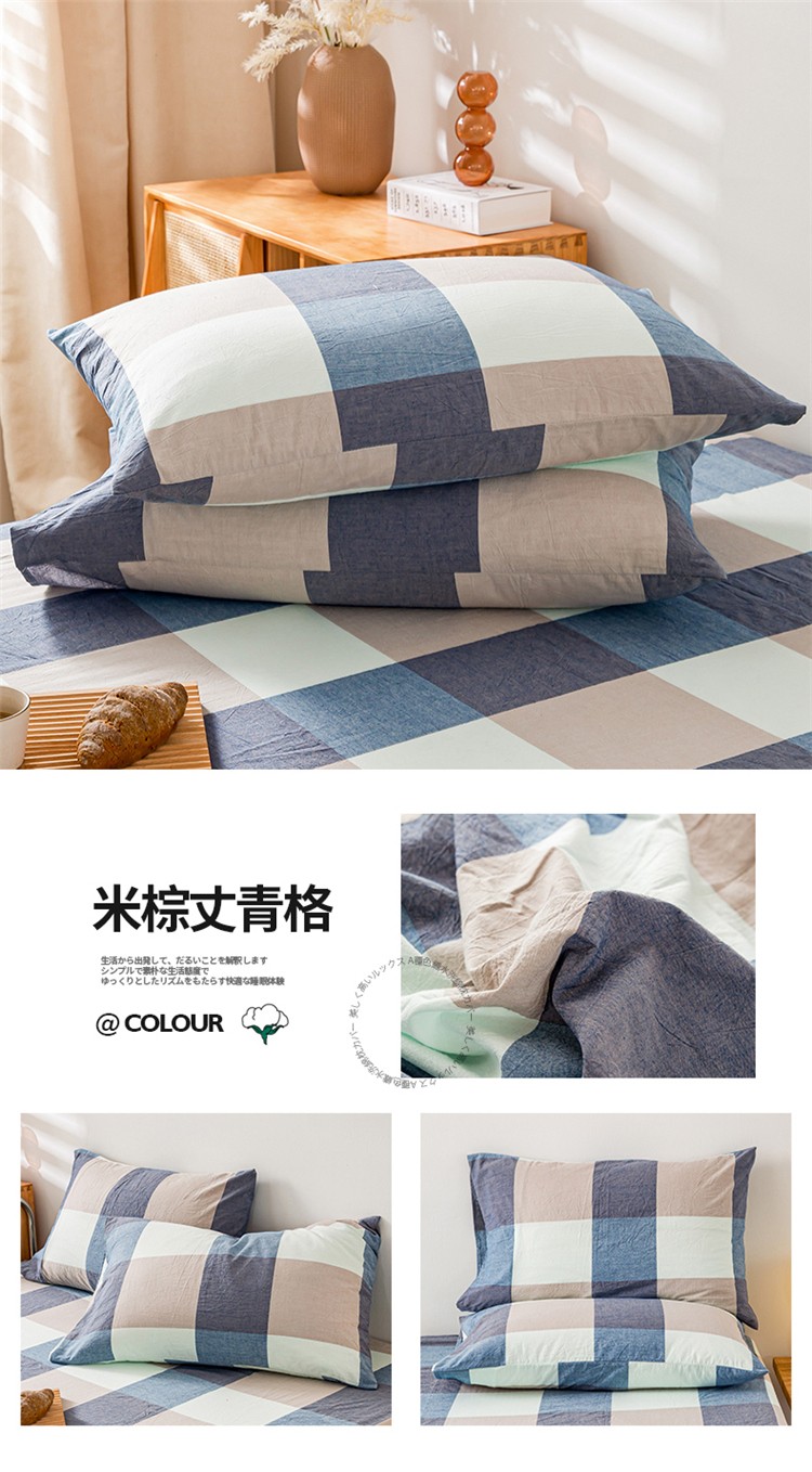 九沐良品 新款A类色织水洗棉四件套-单品枕套 米粽丈青格