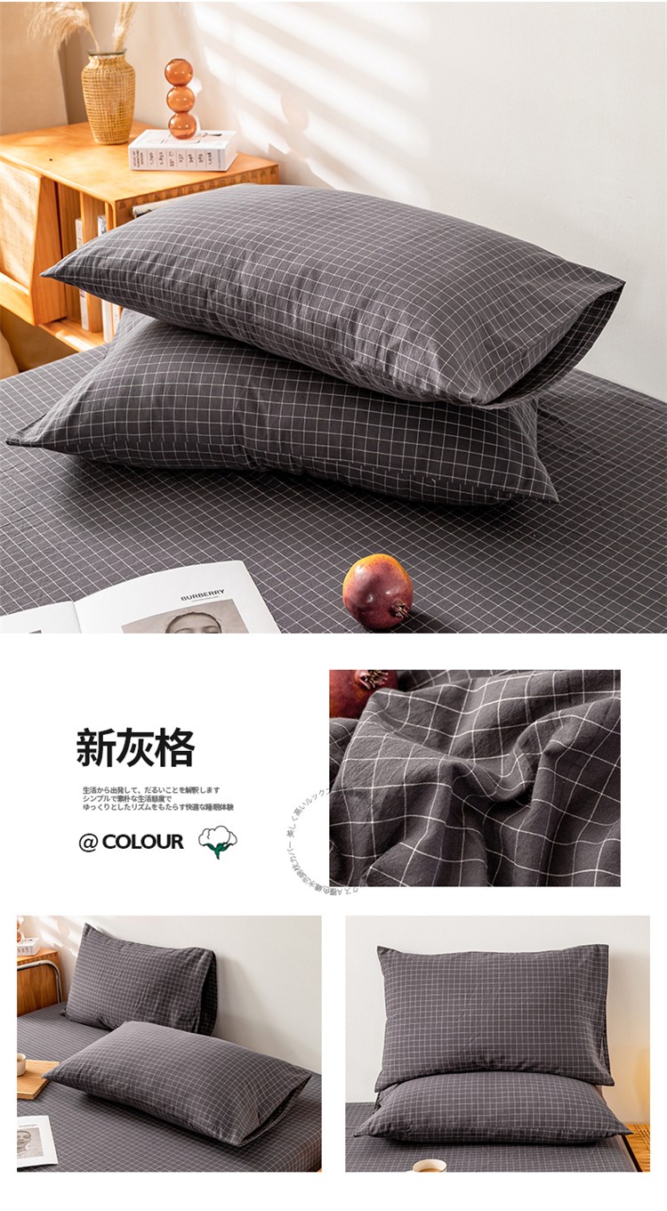 商品名称:九沐良品 新款A类色织水洗棉四件套-单品枕套 新灰格