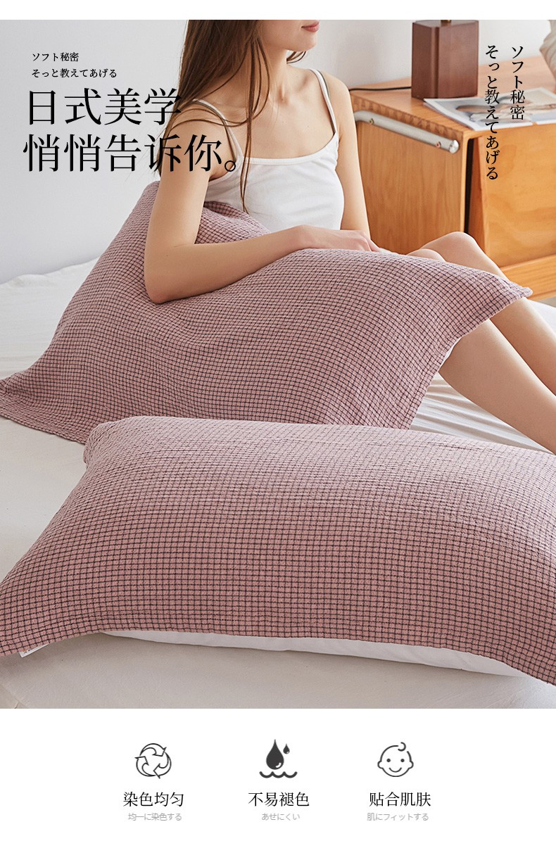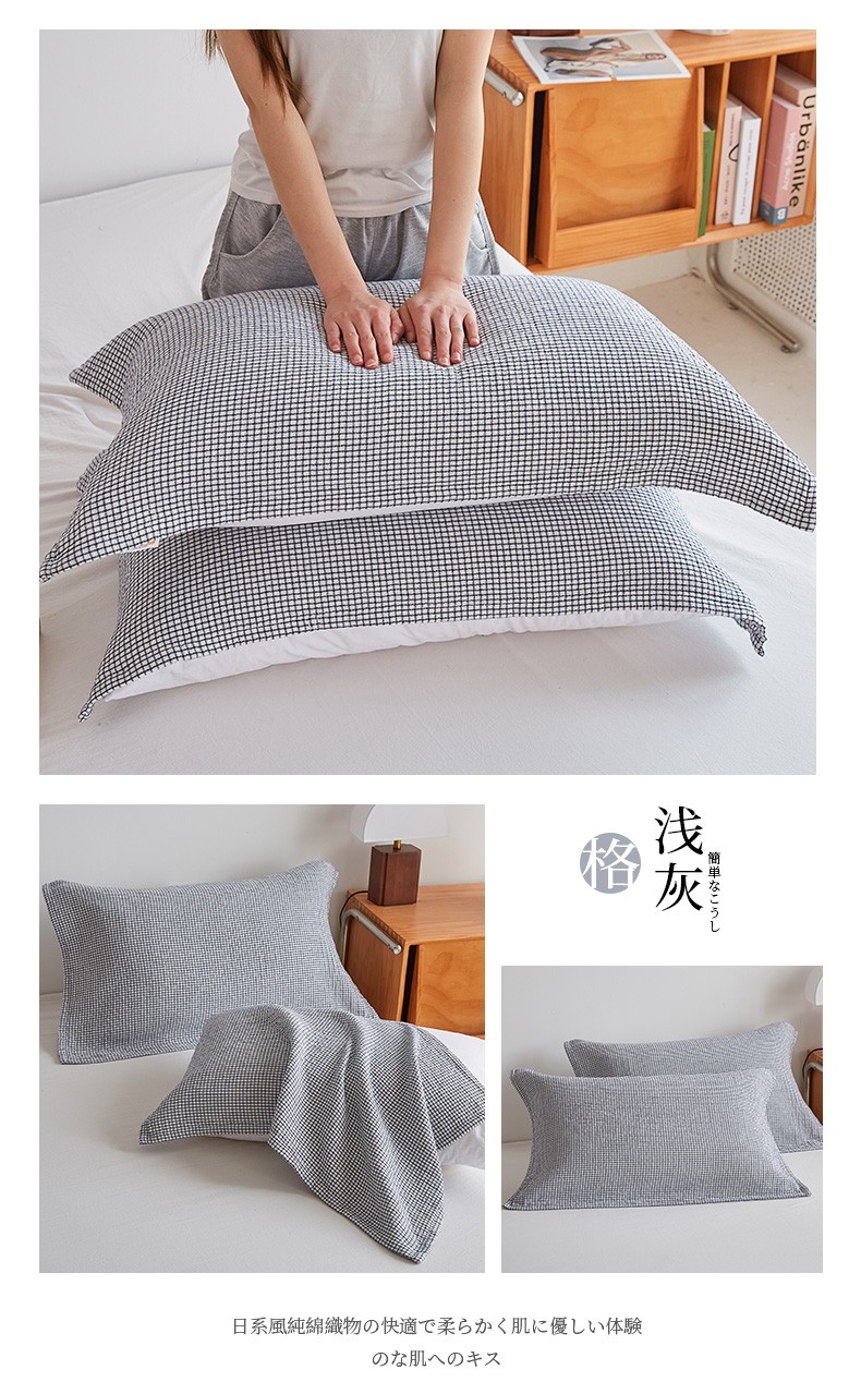 (总)乐家毛巾被 2023新款色织日式三层小格枕巾