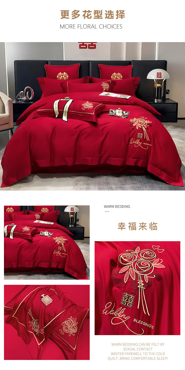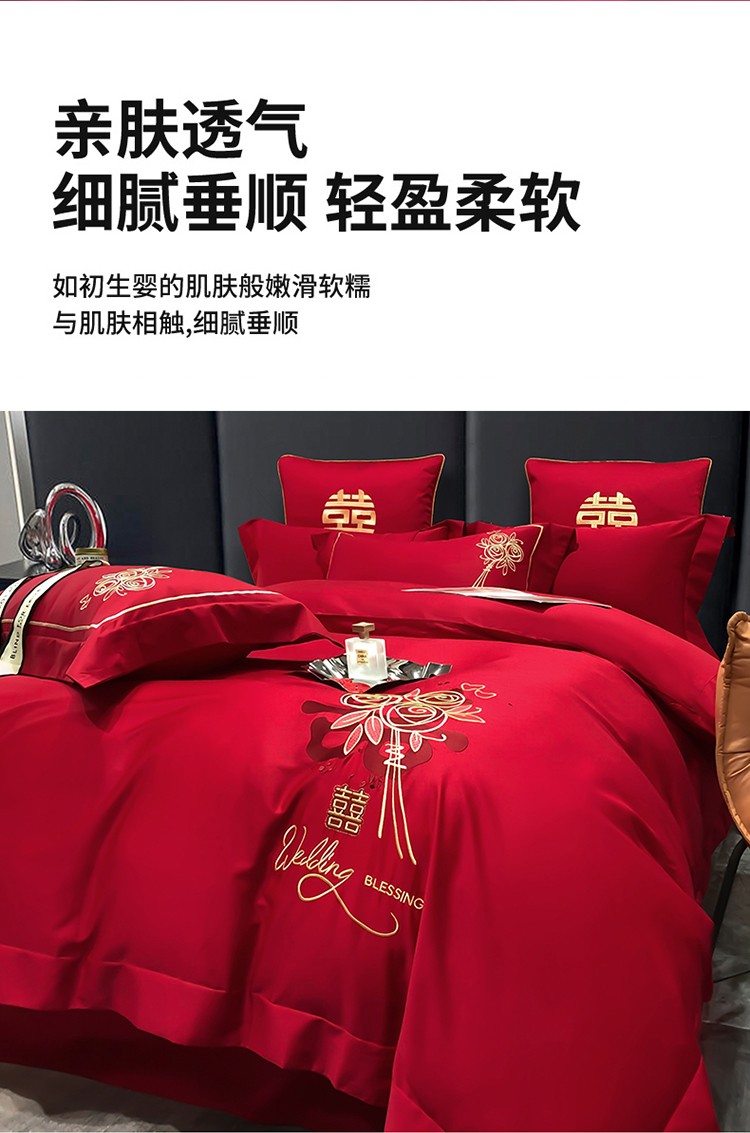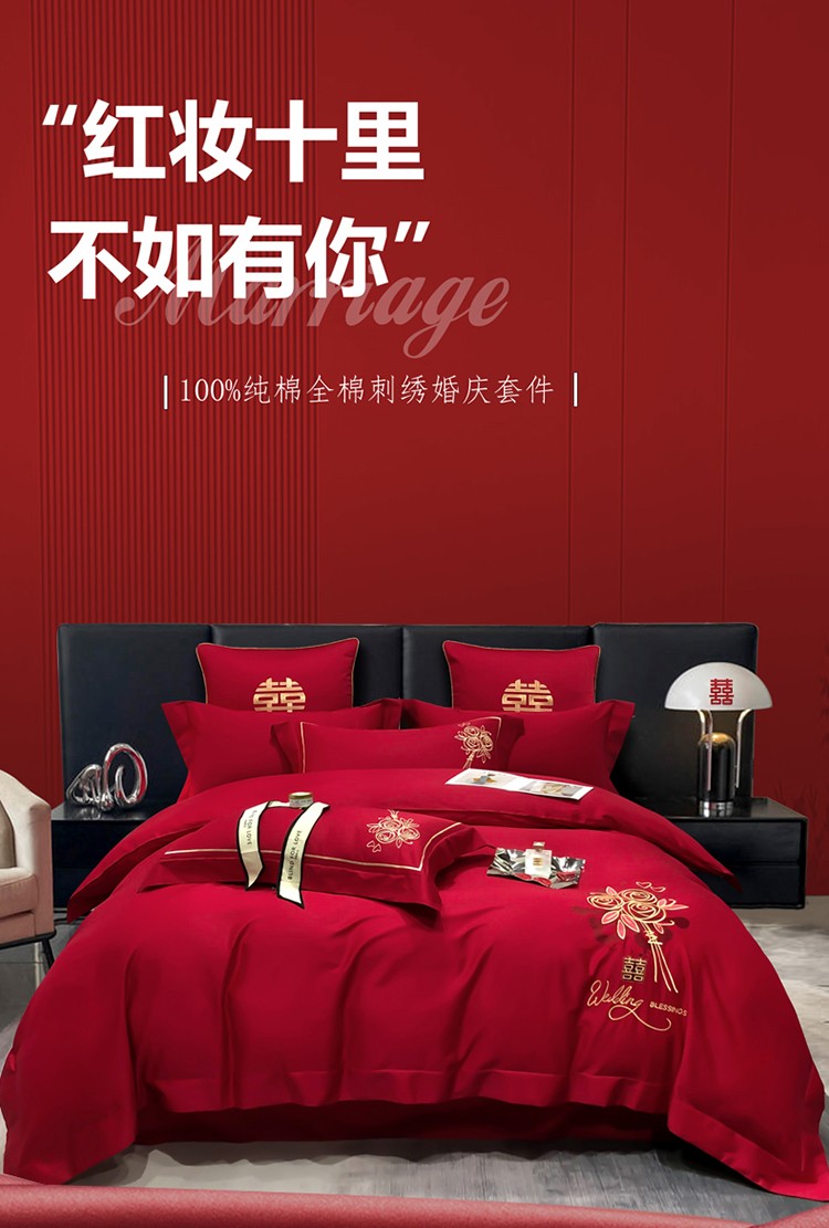 (总)甜咪咪婚庆 2025新款50支长绒棉全棉婚庆床单床盖四件套多件套刺绣工艺,洛可可,爱恋小熊,爱意久久,多子多福,花田喜事,节节高升,克拉恋人,浪漫情怀,怦然心动红,怦然心动玉,甜心玫瑰,温莎公主,伊甸园,醉红妆