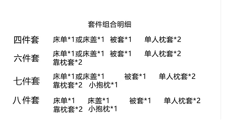 [{"sp_id":11,"sp_name":"\u989c\u8272\u5206\u7c7b","sp_format":2,"sp_list":[{"sp_value_id":663,"sp_value_name":"\u5e78\u798f\u6765\u4e34","sp_value_image":{"id":999,"path":"https:\/\/img3.91jf.com\/qcloud\/goods\/20230317\/1679036606Ccn8Fe.jpg_30_30.jpg"},"sp_value_video":{"id":0,"img":"","path":"","time":0,"download_num":0,"play_num":0},"price":"195.00","storage":600,"weight":"3.000","is_check_weight":0,"plus_price":"","sp_sort":175123002}]},{"sp_id":10,"sp_name":"\u9002\u7528\u5e8a\u5c3a\u5bf8","sp_format":1,"sp_list":[{"sp_value_id":778,"sp_value_name":"1.5m\u5e8a\u5355\u6b3e\u56db\u4ef6\u5957","sp_value_image":{"id":0,"path":""},"sp_value_video":{"id":0,"img":"","path":"","time":0,"download_num":0,"play_num":0},"price":"195.00","storage":100,"weight":"3.000","is_check_weight":0,"plus_price":"","sp_sort":175123002},{"sp_value_id":779,"sp_value_name":"1.8m\u5e8a\u5355\u6b3e\u56db\u4ef6\u5957","sp_value_image":{"id":0,"path":""},"sp_value_video":{"id":0,"img":"","path":"","time":0,"download_num":0,"play_num":0},"price":"195.00","storage":100,"weight":"3.000","is_check_weight":0,"plus_price":"","sp_sort":175123003},{"sp_value_id":780,"sp_value_name":"2.0m\u5e8a\u5355\u6b3e\u56db\u4ef6\u5957","sp_value_image":{"id":0,"path":""},"sp_value_video":{"id":0,"img":"","path":"","time":0,"download_num":0,"play_num":0},"price":"205.00","storage":100,"weight":"3.200","is_check_weight":0,"plus_price":"","sp_sort":175123004},{"sp_value_id":781,"sp_value_name":"\u65b9\u57ab\u4e00\u5bf9","sp_value_image":{"id":0,"path":""},"sp_value_video":{"id":0,"img":"","path":"","time":0,"download_num":0,"play_num":0},"price":"35.00","storage":100,"weight":"0.500","is_check_weight":0,"plus_price":"","sp_sort":175123005},{"sp_value_id":782,"sp_value_name":"\u4fe1\u5c01\u6795\u5957\u4e00\u5bf9","sp_value_image":{"id":0,"path":""},"sp_value_video":{"id":0,"img":"","path":"","time":0,"download_num":0,"play_num":0},"price":"40.00","storage":100,"weight":"0.500","is_check_weight":0,"plus_price":"","sp_sort":175123006},{"sp_value_id":783,"sp_value_name":"\u5c0f\u62b1\u6795\u4e00\u4e2a","sp_value_image":{"id":0,"path":""},"sp_value_video":{"id":0,"img":"","path":"","time":0,"download_num":0,"play_num":0},"price":"35.00","storage":100,"weight":"0.300","is_check_weight":0,"plus_price":"","sp_sort":175123007}]}]