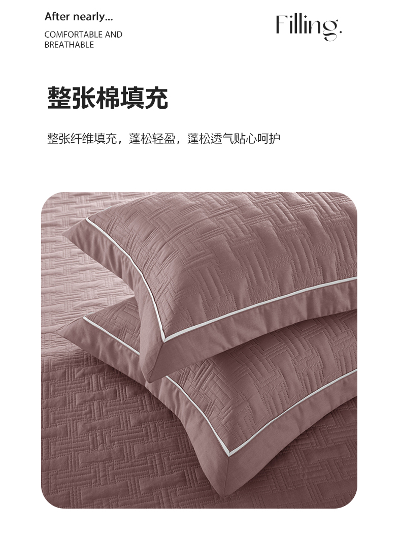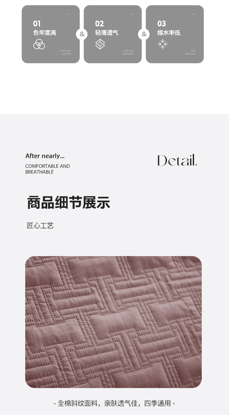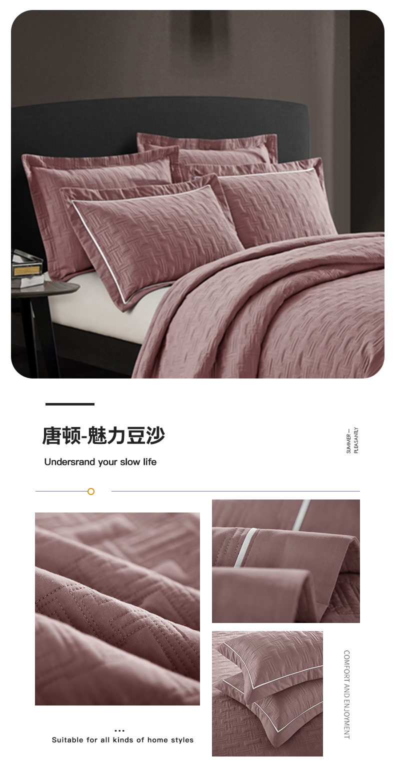 商品名称:优乐家纺 2023新款双面全棉斜纹绗绣床盖唐顿系列三件套 唐顿-魅力豆沙