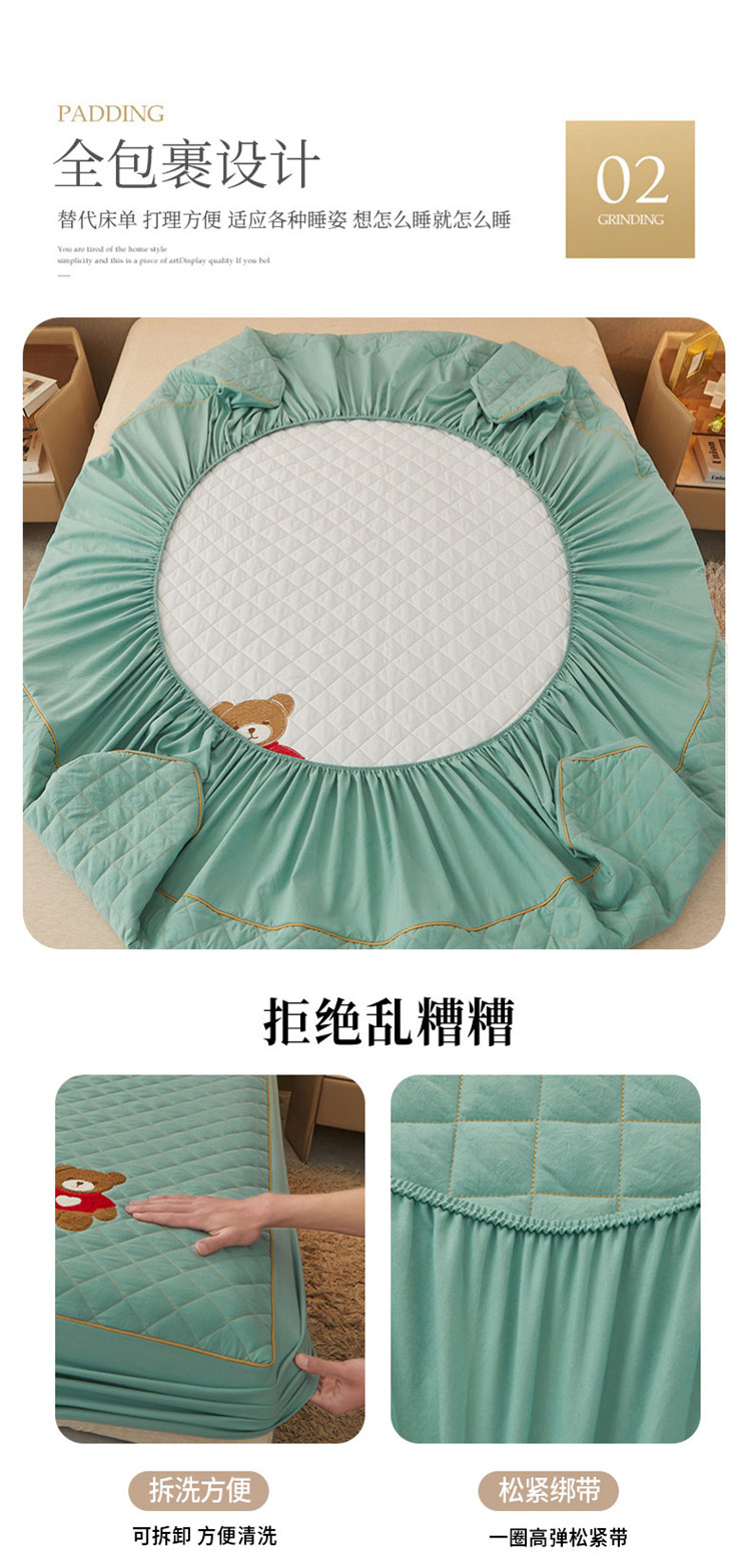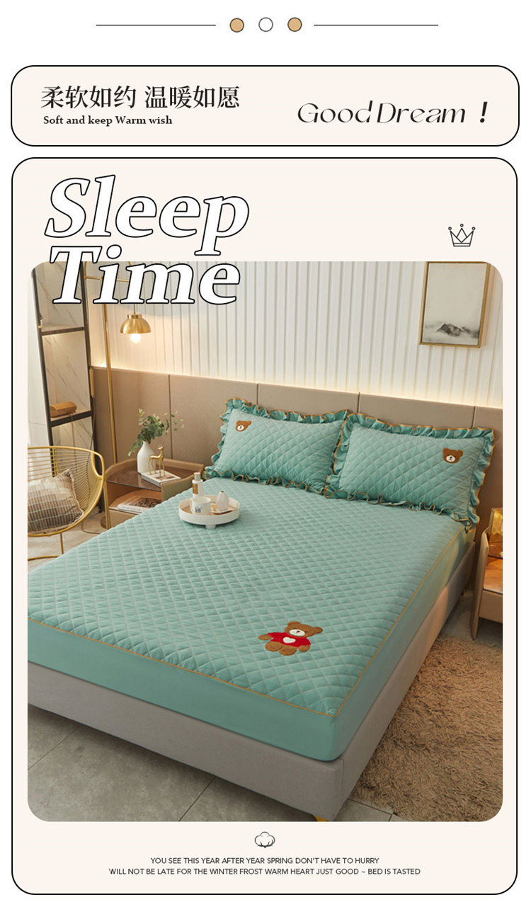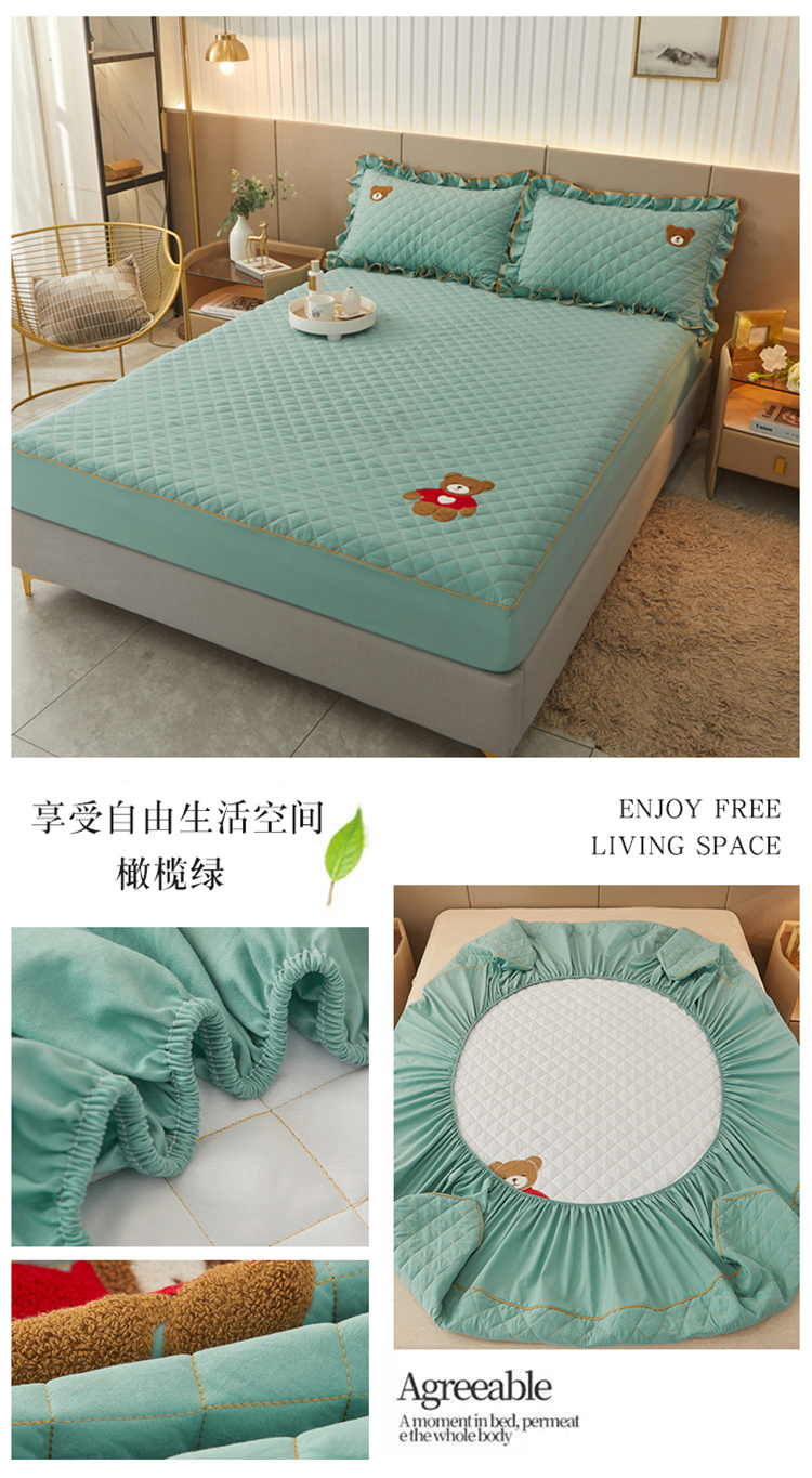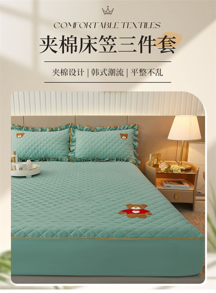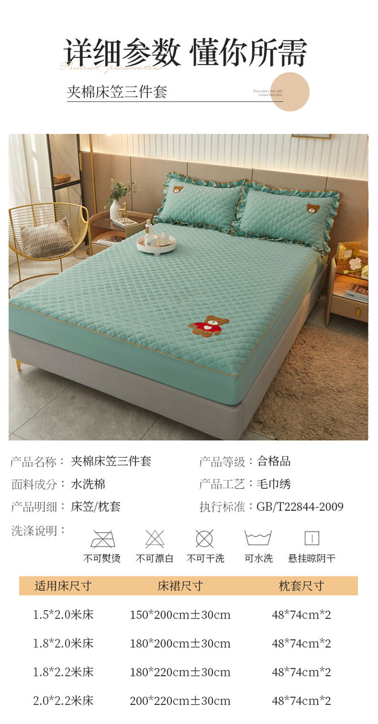 当前位置: 91家纺网 > 商品网购 > 床品套件 > 三件套 > 屹成家纺 2024年水洗棉毛巾绣款床笠三件套 橄榄绿