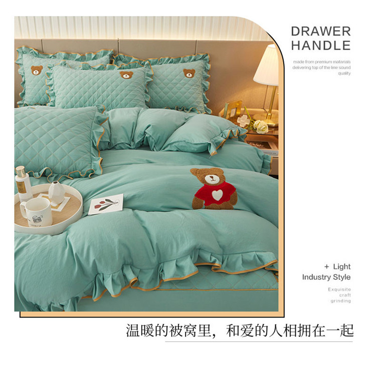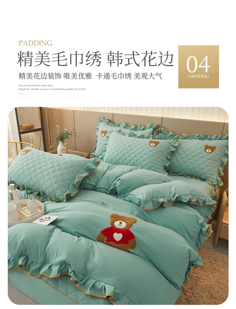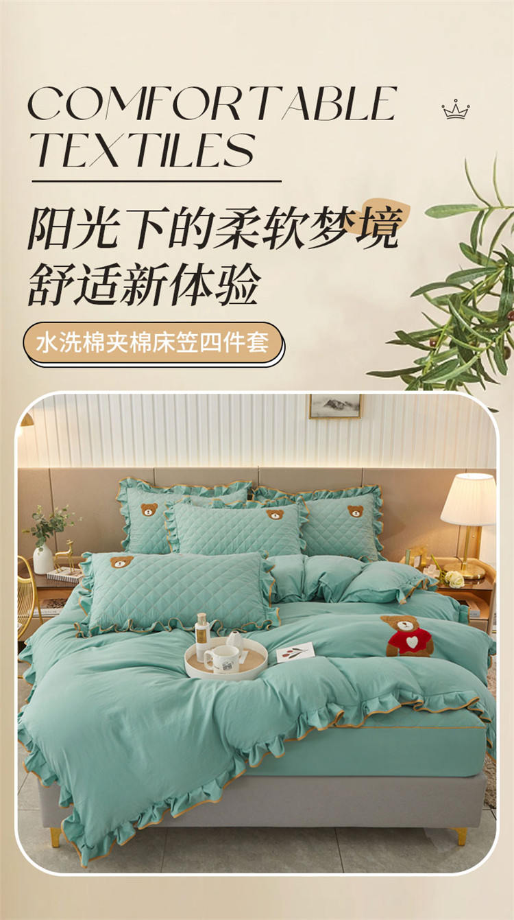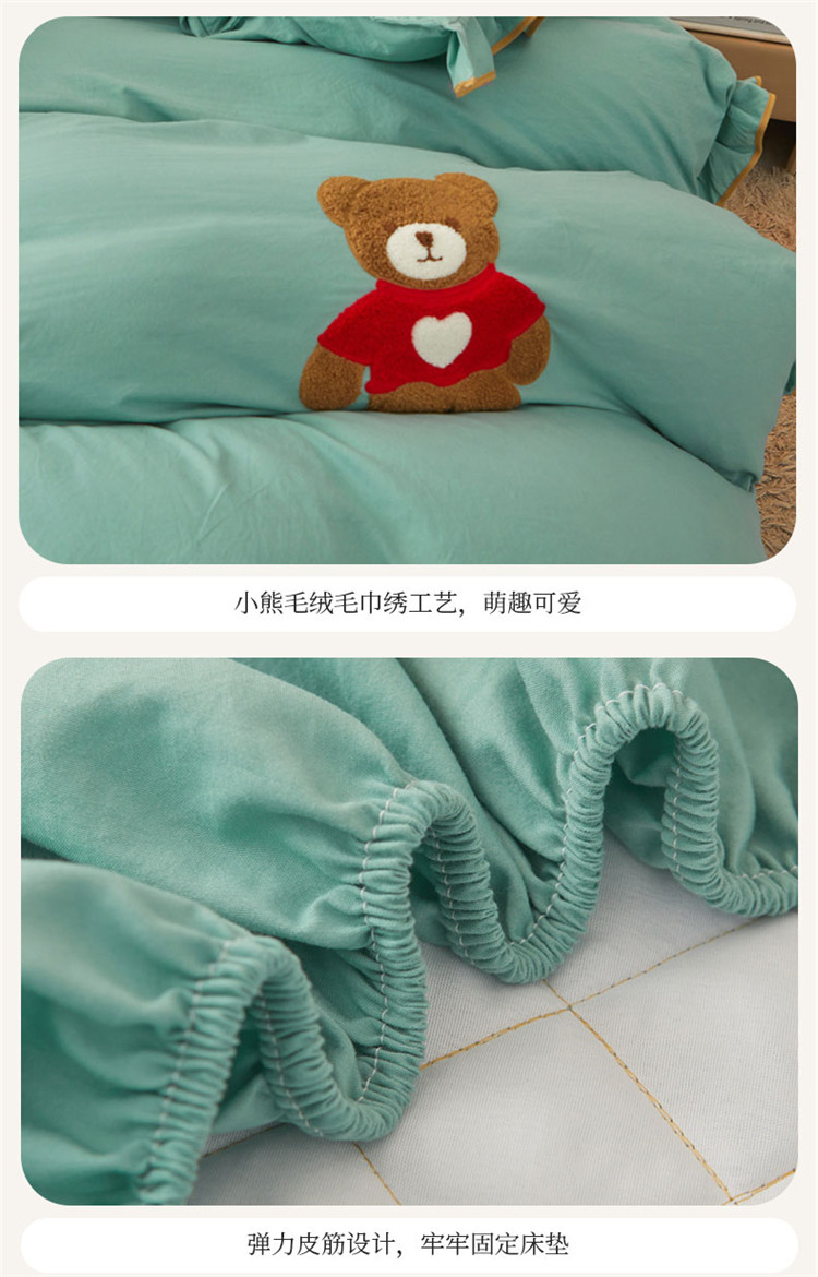 当前位置: 91家纺网 > 商品网购 > 床品套件 > 四件套 > 水洗棉四件套 > 屹成家纺 2024年水洗棉毛巾绣款床笠四件套 橄榄绿