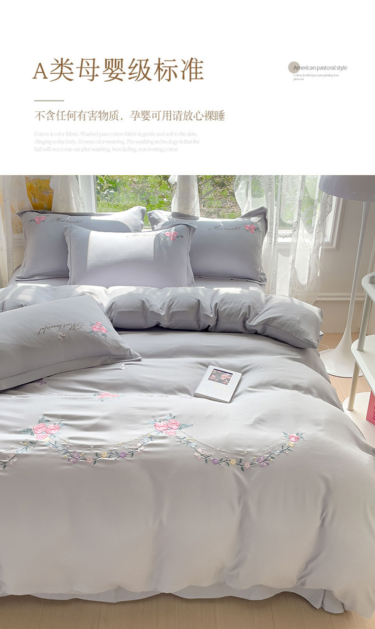 (总)云锦2023秋冬新品全棉磨毛绣花四件套缦芯,缦芯粉,缦芯灰,缦芯橘,缦芯蓝,缦芯紫