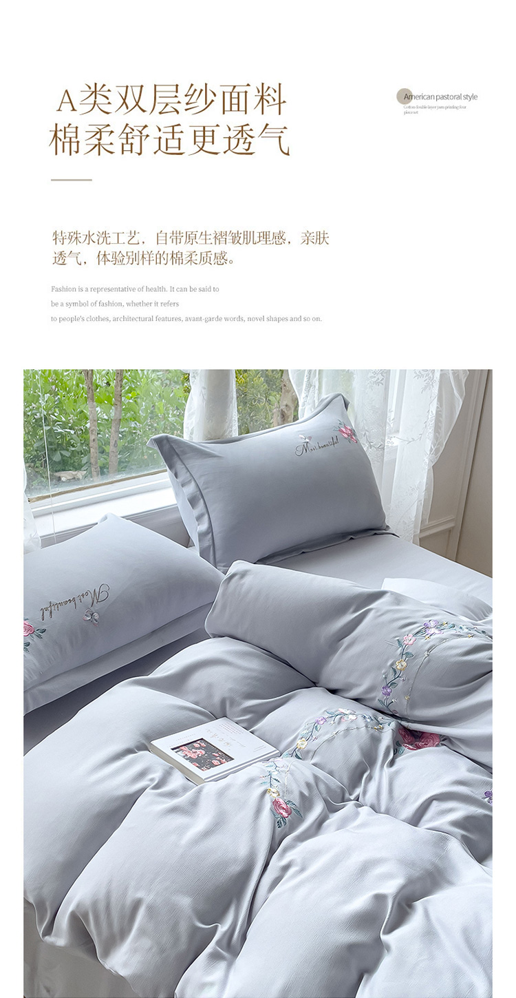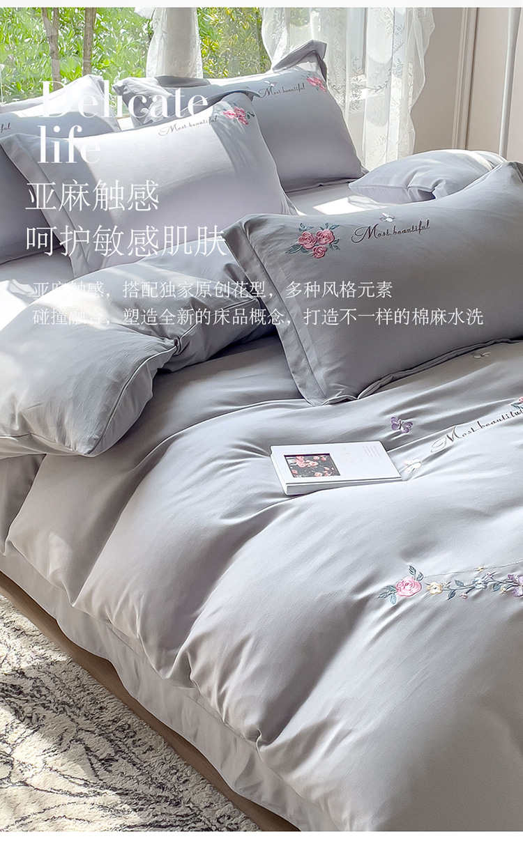 2023春夏新品A类双层纱水洗棉麻四件套-蝶恋花系列 蝶恋花-冰川灰