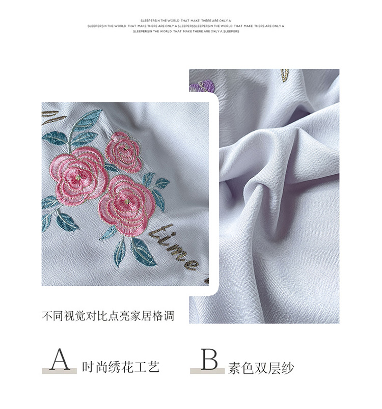 商品名称:2023春夏新品A类双层纱水洗棉麻四件套-蝶恋花系列 蝶恋花-冰川灰